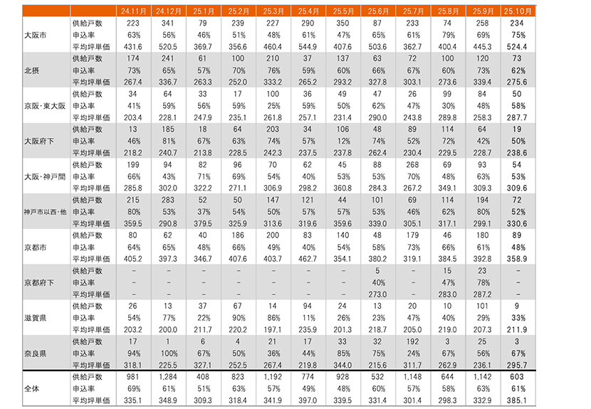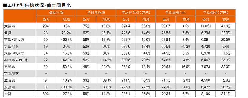 集計対象エリアは首都圏及び関西で、それぞれのエリア別相場情報、需給動向、着工件数等を集計しました。