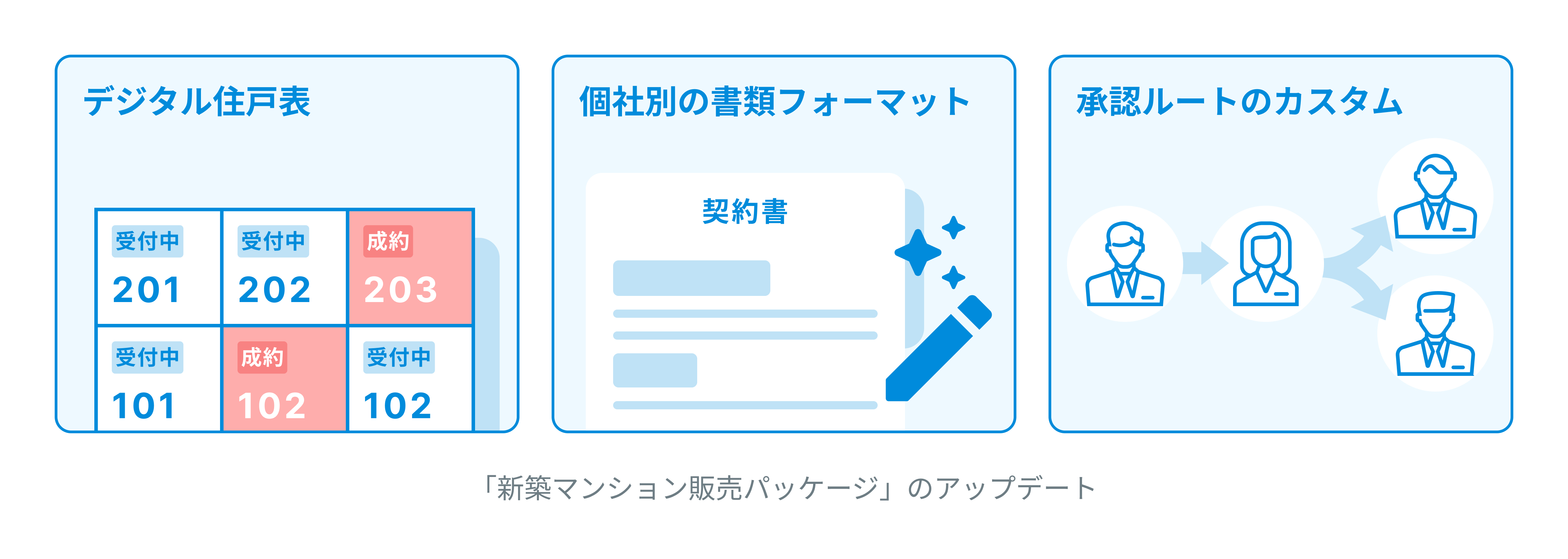 本パッケージは、在庫管理から顧客への公開、Web申込、抽選、電子契約、そして引渡しに関わる手続きまで、新築マンション販売における一連の工程をワンパッケージで提供するものです。これにより、データの分断をなくし、販売担当者の業務効率とお客様の購入体験(CX)を同時にアップデートいたします。