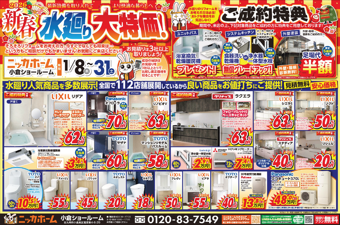 特に新春限定の、LIXIL製トイレ・洗面台のお得な「初売りパック」は注目です!
