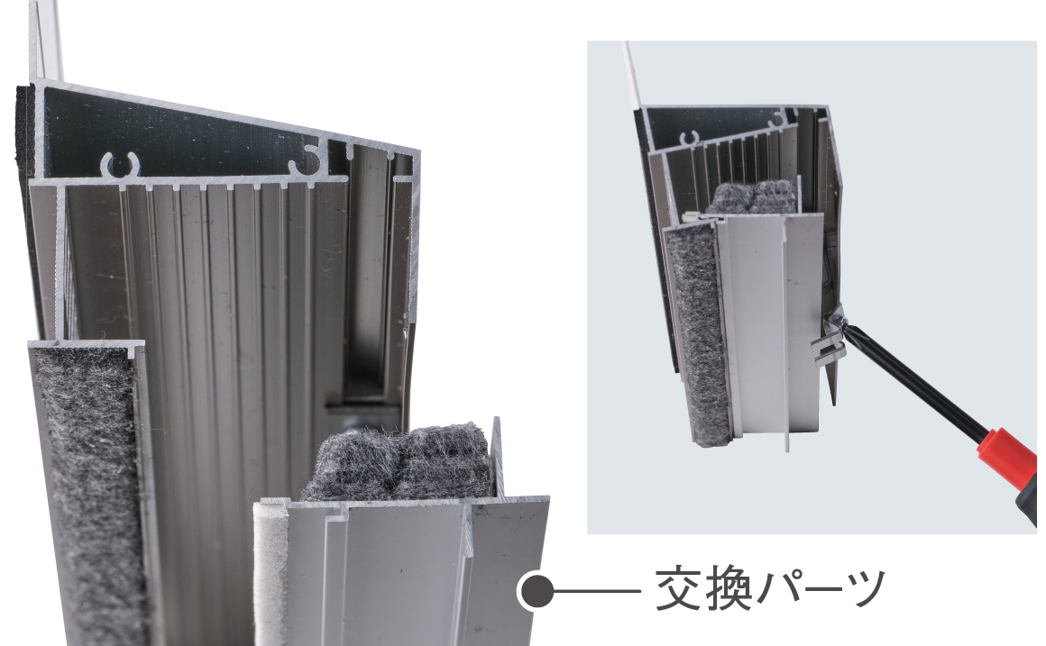 水切り本体はそのままに交換パーツを取り替えるだけで、換気と止水機能を回復。大掛かりな工事は不要です。