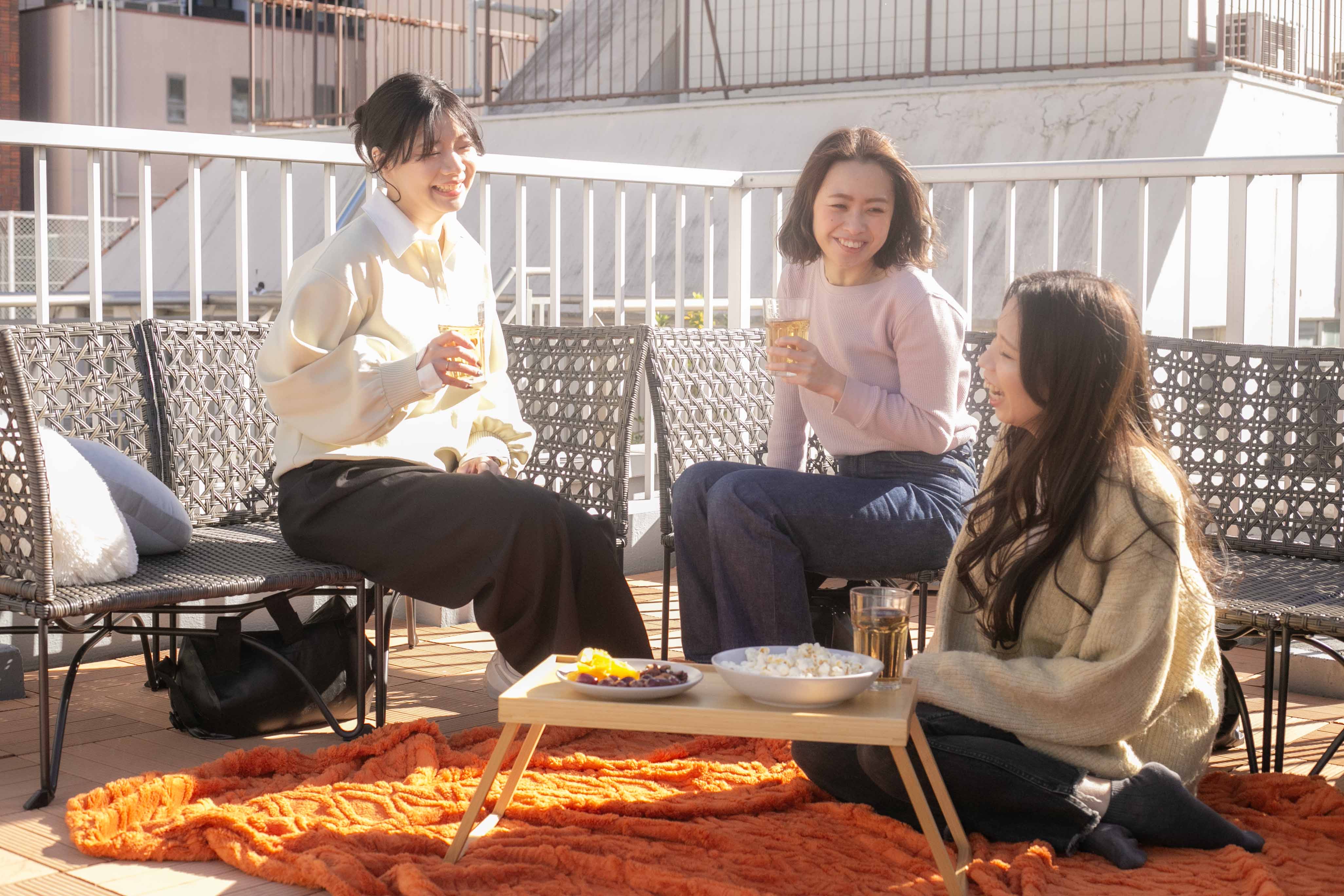 高層ビルが立ち並ぶ都心にいながら、空を近くに感じられるプライベートなアウトドア空間です。
