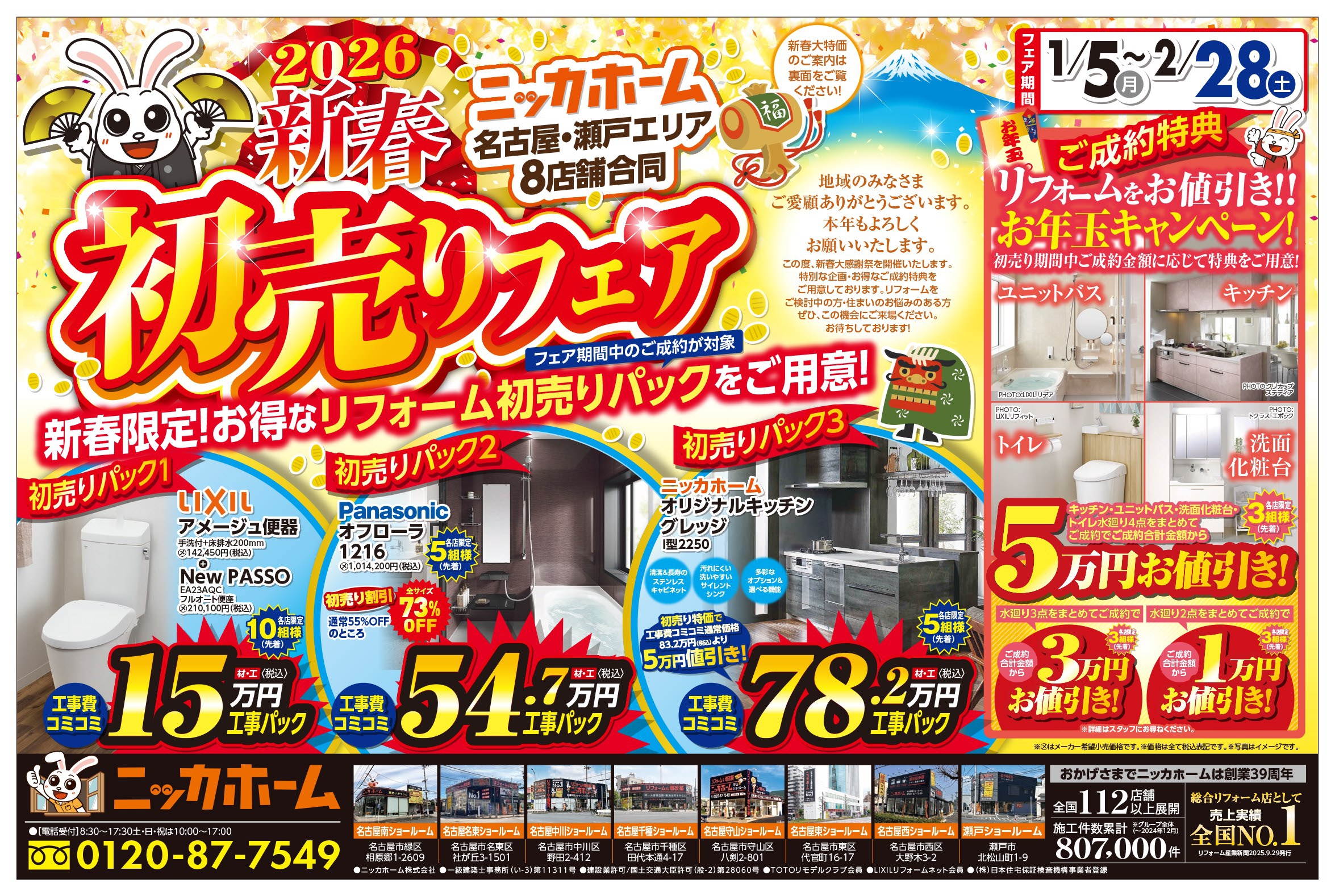 2026 初売 ニッカホーム 名古屋・瀬戸エリア 8店舗合同 新春大感謝祭