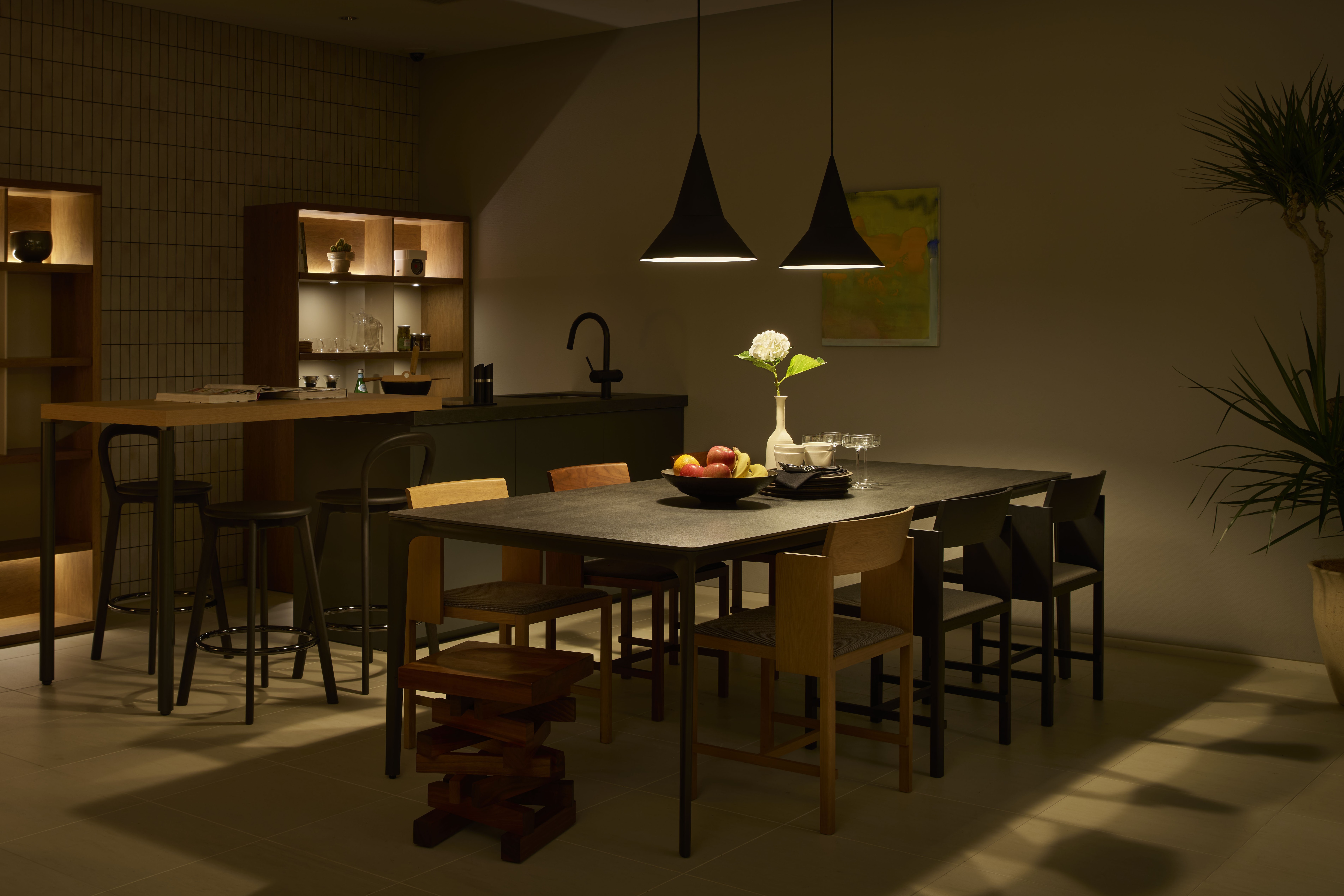 同シリーズが採用する高演色の光源は、色再現性の高さが求められる環境でも選ばれるほど、色の違いまで繊細に映し出します。家具の素材感はもちろん、料理や食材、肌の色まで自然に美しく見せます。