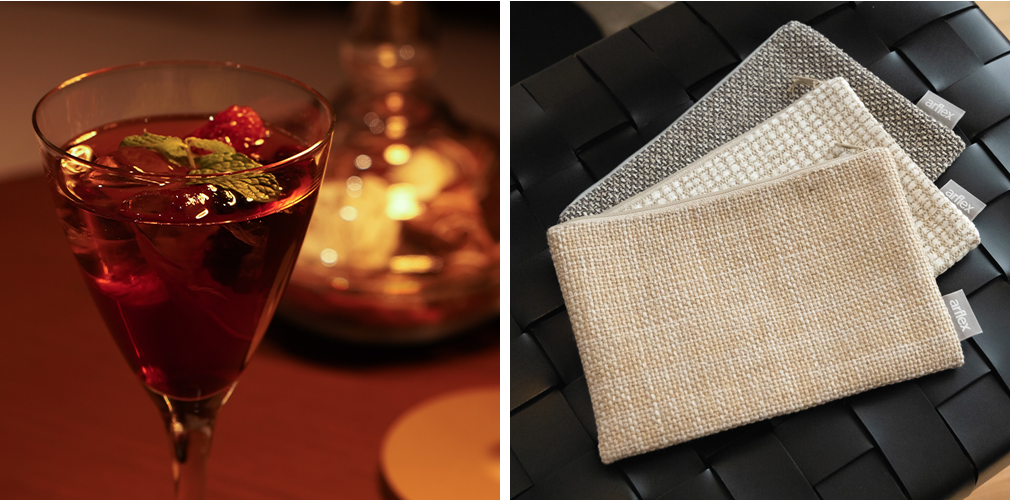 営業時間を延長する、夜6時-8時にご来店の方には、チョコレートとベリーのノンアルコールカクテルをご用意しています。また、アンケートにお答えいただいた方には、arflexの家具の端切れで作ったオリジナルポーチをプレゼントします。
