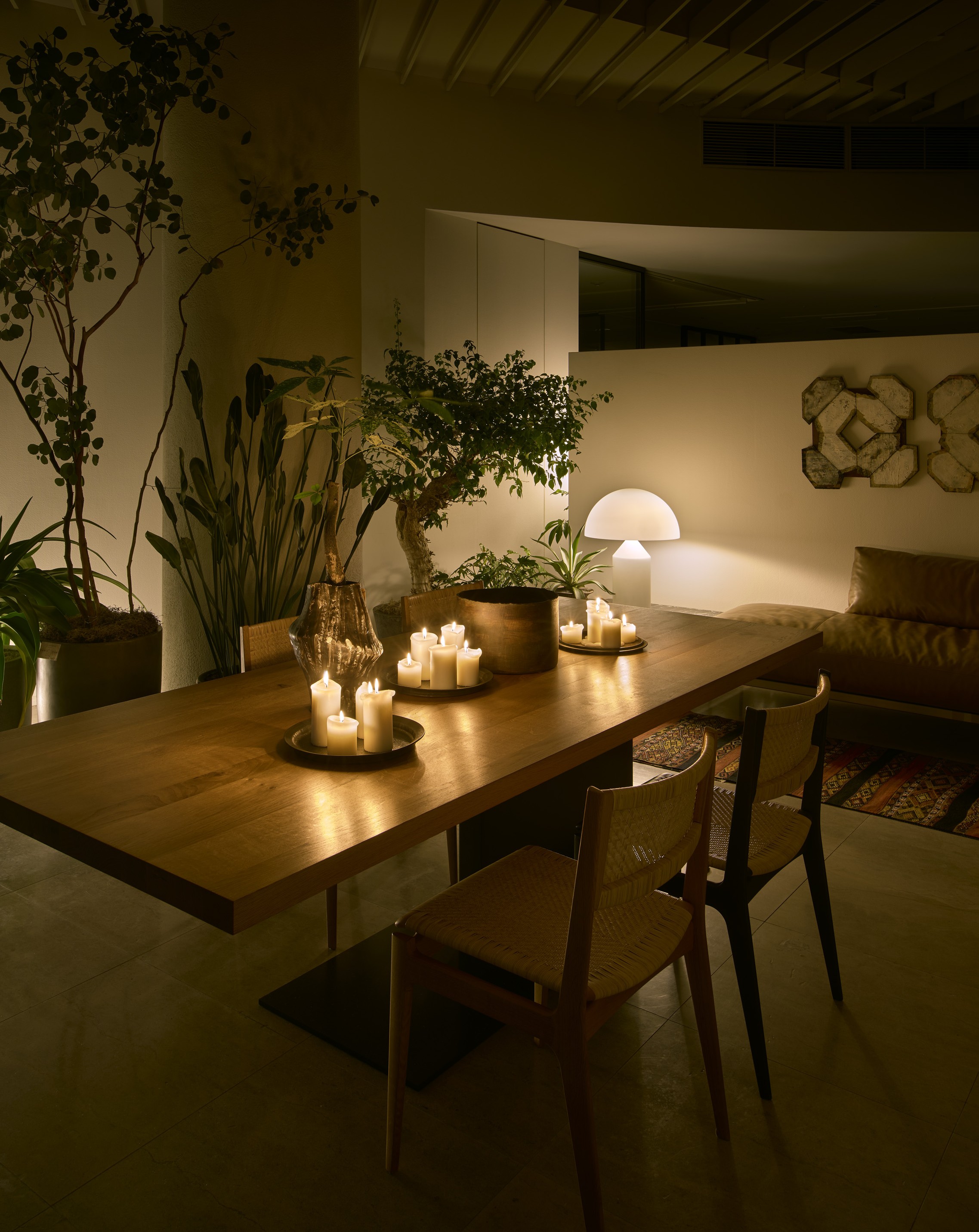 なお、アルフレックスのオリジナル照明シリーズ「LUCE NATURA(ルーチェ ナチュラ)」は、太陽光に近い見え方を叶える紫色LEDを用いた高演色性LED(Ra=97)を採用。料理や肌、インテリアの色味を自然に美しく見せる光を追求しています。