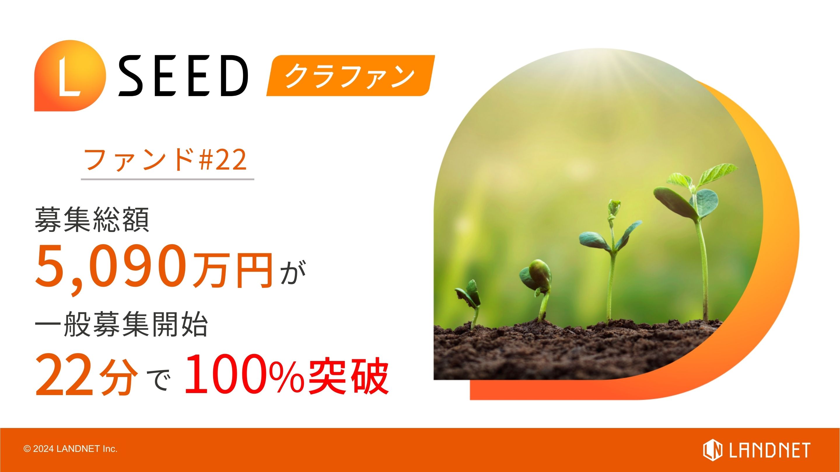 最新のテクノロジーと独自のデータベースを活用した「ダイレクト不動産」として不動産の流通、再生、運用に新たな価値を提供する株式会社ランドネット(本社:東京都豊島区/代表取締役社長:榮 章博、証券コード:2991、以下ランドネット)は、不動産投資クラウドファンディング 『LSEED (エルシード) #22』 において、一般募集開始からわずか22分で募集総額5,090万円に達したことをお知らせいたします。