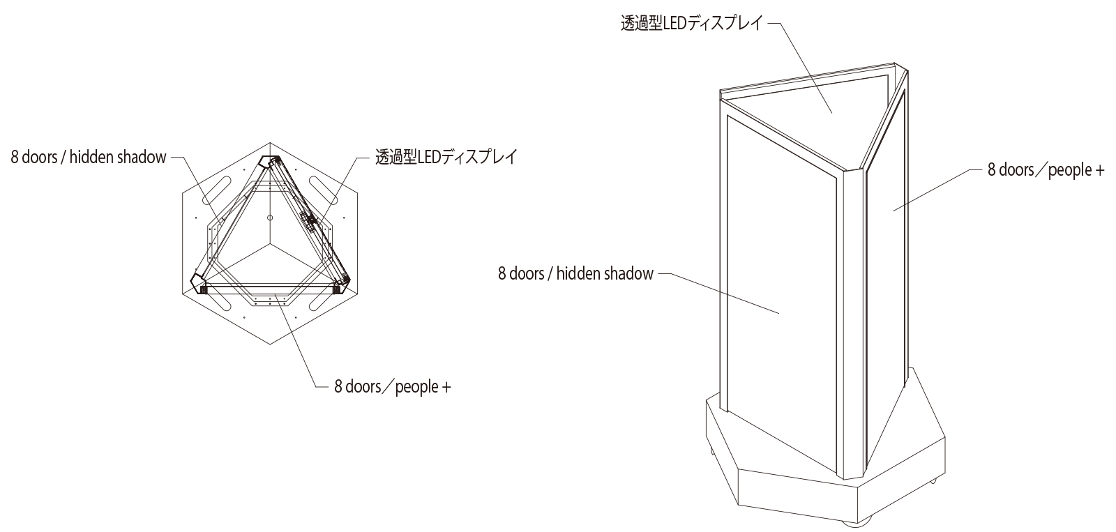 【ドア2 種とLED ディスプレイによる3 面構成(8 台)】