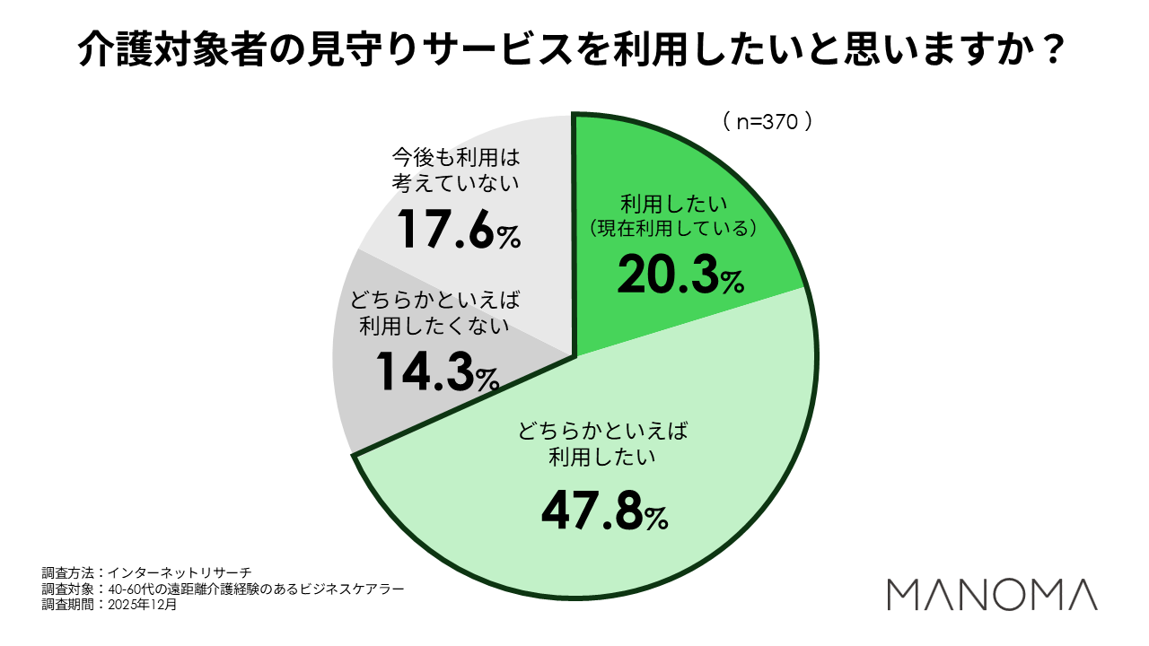 <見守りサービスを活用したい方が約7割、カメラやセンサーでの見守りも視野に>