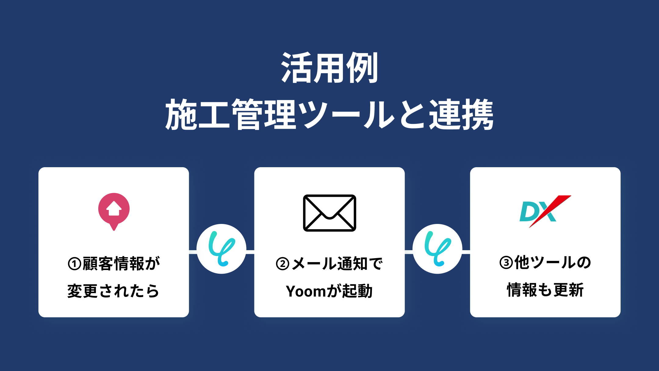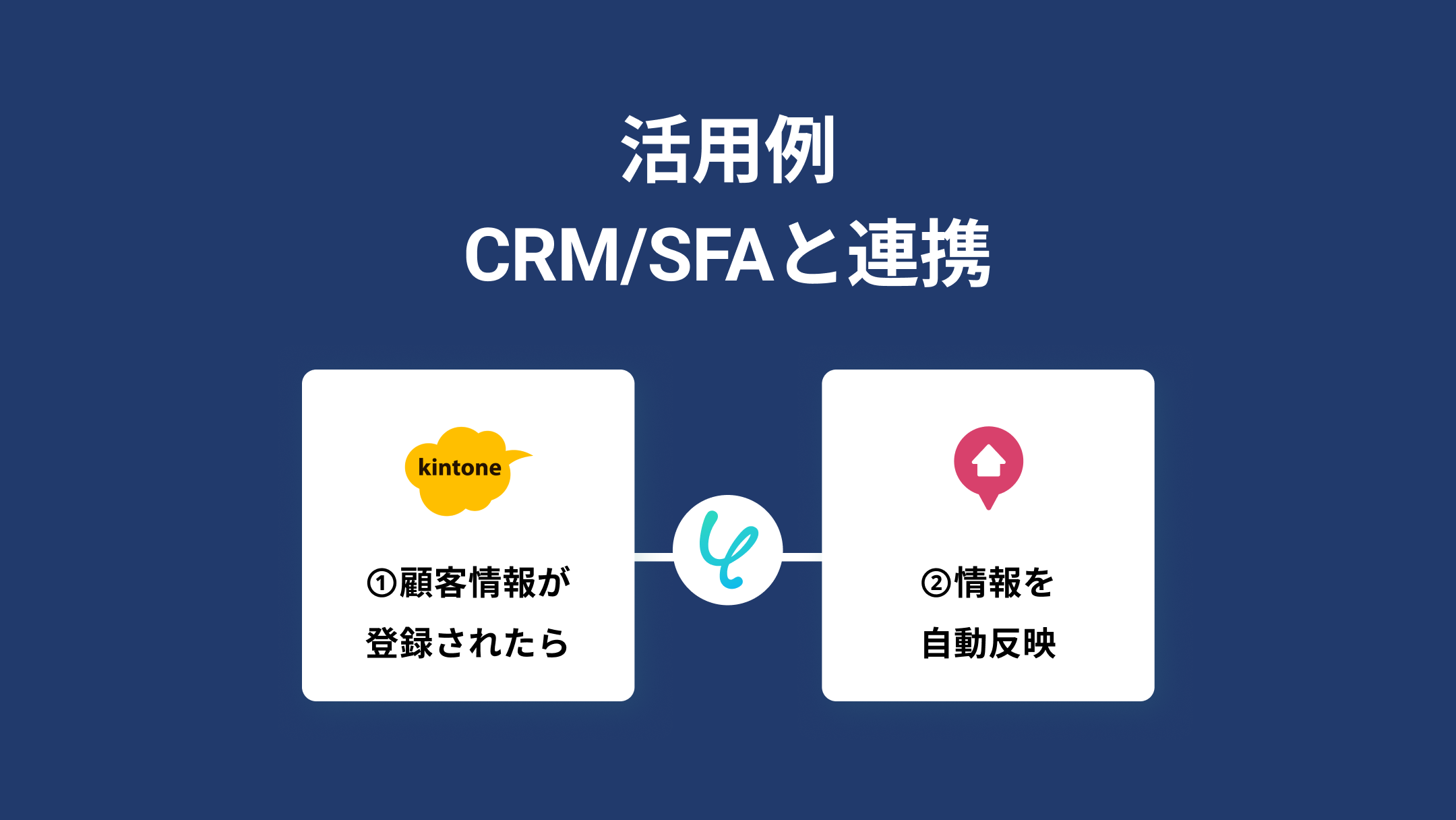 本連携では、Yoomを中継地点として利用します。KASIKAの顧客アクションや登録情報をきっかけとして、Yoom経由でChatwork、LINE公式アカウント、kintone、Salesforce、基幹ツールなどの外部ツールへ自動的にデータを双方向で同期することが可能です。
