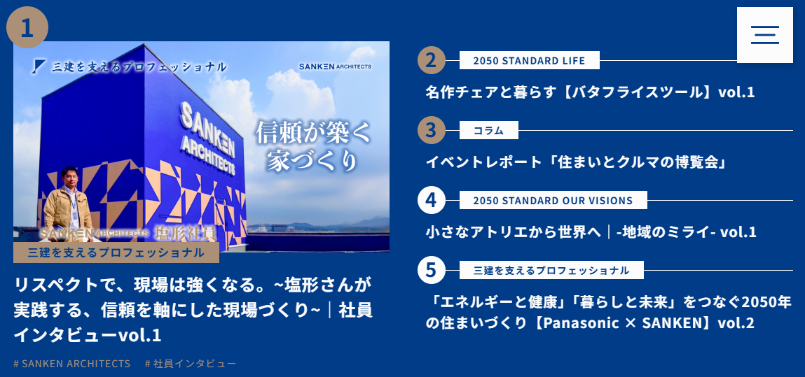 今回のコーポレートサイト新設は、そうした課題に対応する第一歩であり、三建がどのような想いで住まいづくりに取り組んでいるのかをオープンかつタイムリーに発信するための新たな拠点となります。