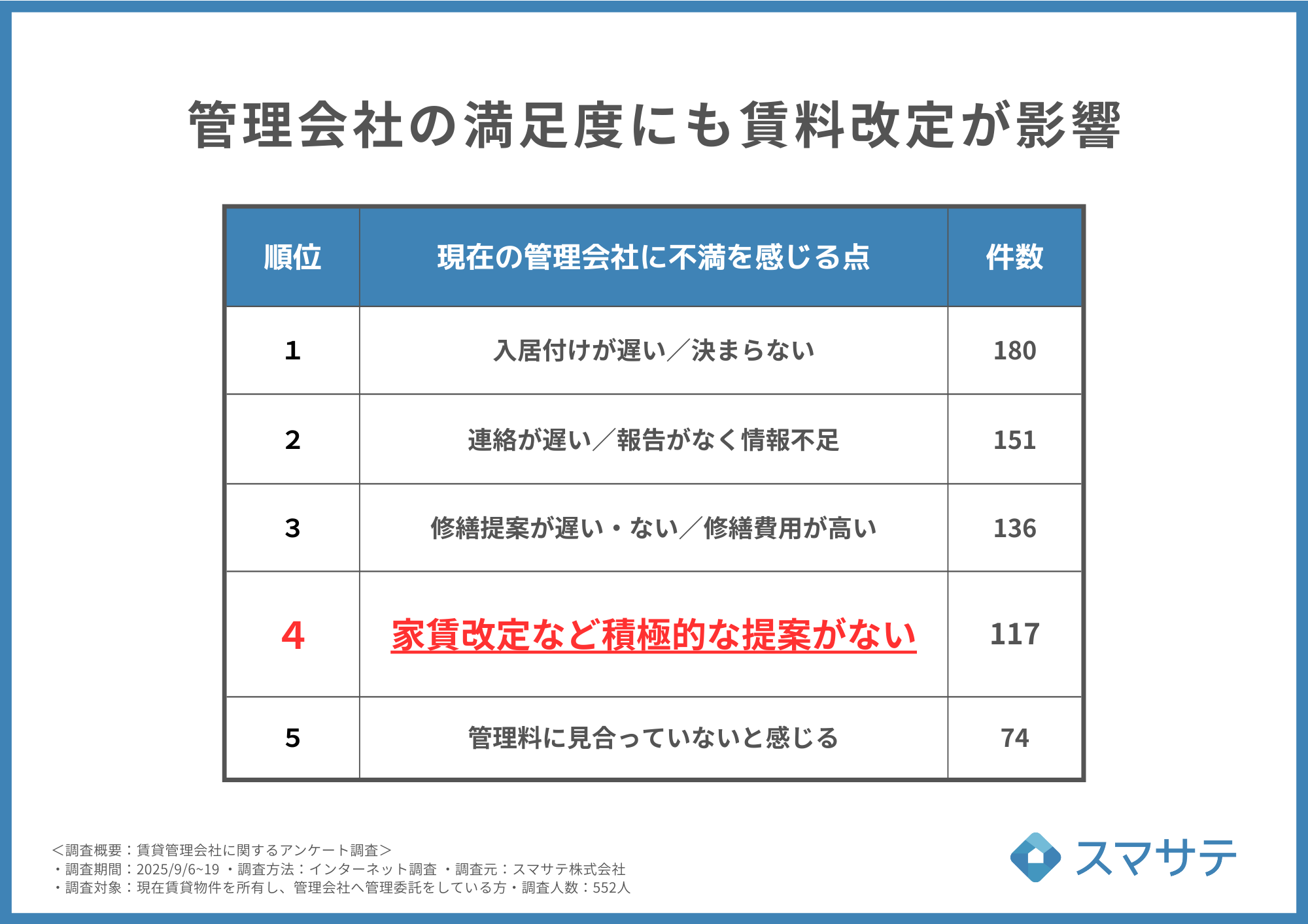 調査対象:現在賃貸物件を所有し、管理会社へ管理委託をしている方・調査人数:552人