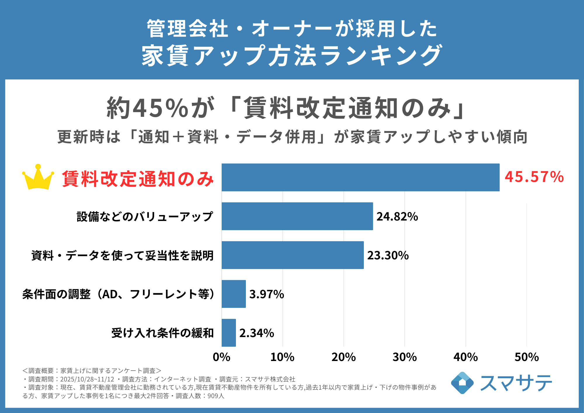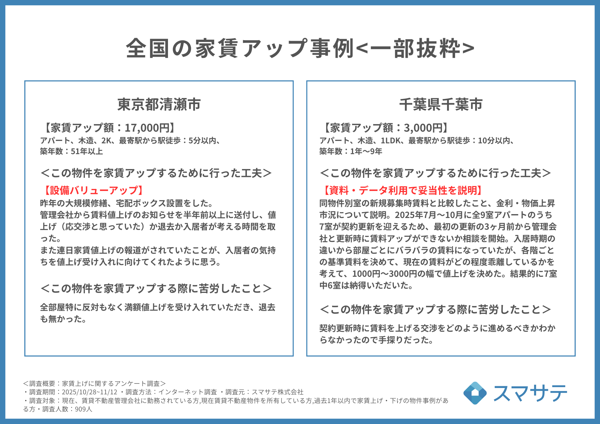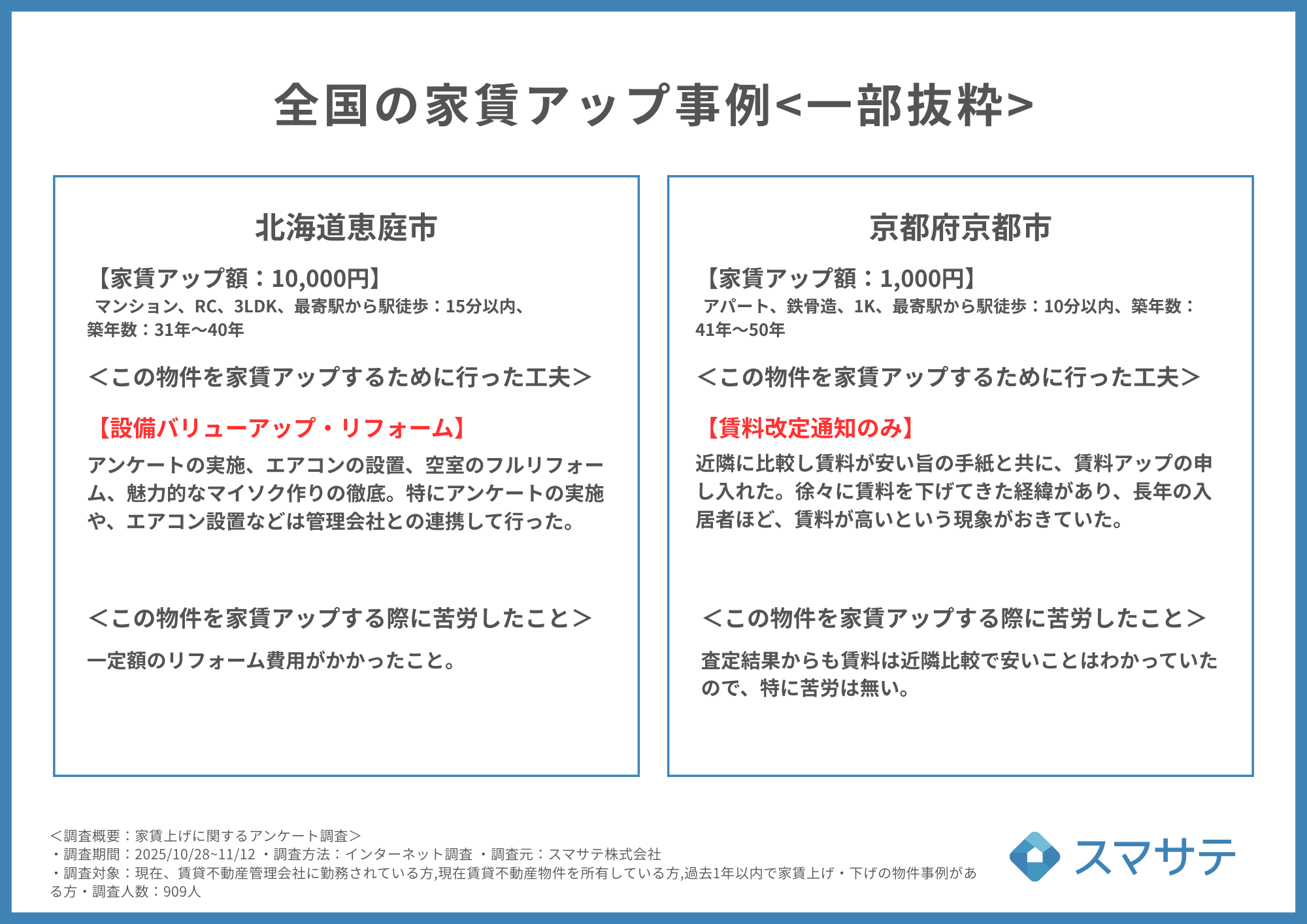 賃貸管理会社・オーナー909名の家賃上げ手法をランキング化、物件エリア別の事例を60件以上公開