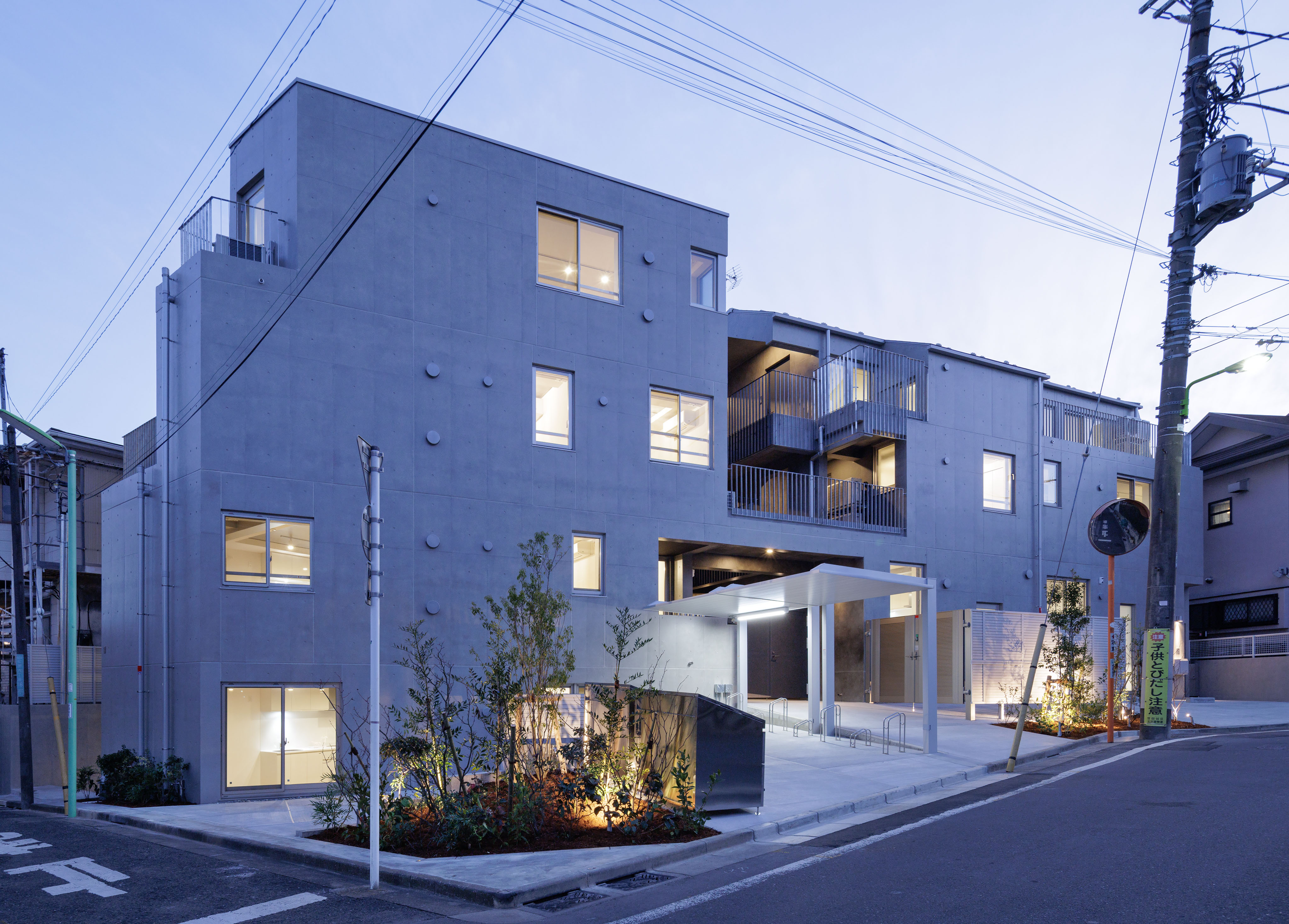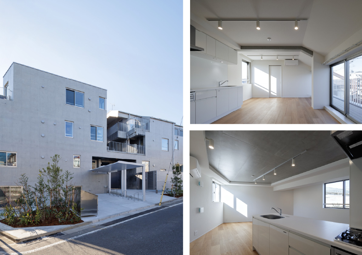 居住空間としてのプライバシーを確保しながら、賃貸集合住宅特有の閉鎖性を解消することを目指しました。道路から連続した前庭、街を立体的に引き込む共用部に加え、「+α」と名付けた公私の中間的な空間を設けることで、ここでの暮らしが意識的に街に開かれることを目指しています。