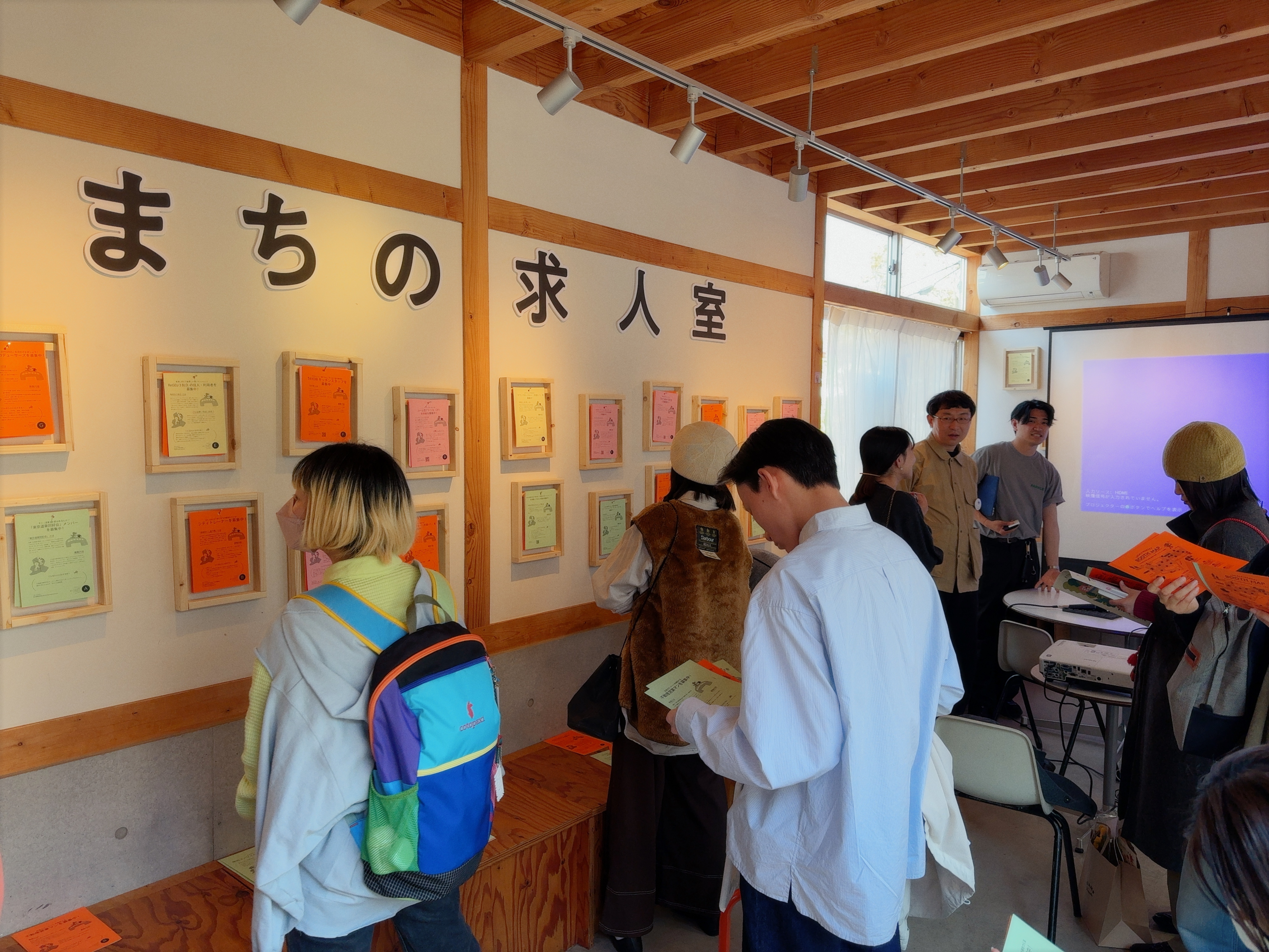 会場内には、各地域のキュレーターが集めた50点近くの採用・ボランティアなどの募集情報を掲載する「まちの求人室」を設置。来場者ひとりひとりと、出店事業者との新たなつながりを創出し、まちを舞台に働く環境づくりについて考える機会を提供します。