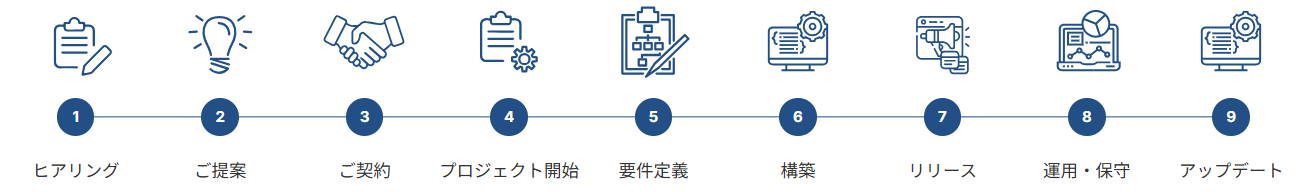 『”テハイ”ロボ』 導入に際しては、現行業務診断からシステム導入、周辺システム連携開発、運用立ち上げまで、一気通貫でご支援します。