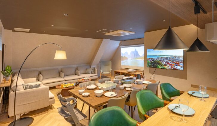 2階には、ダンス後のリフレッシュや交流を深めるための空間として、以下の施設を完備しています。「練習後にそのまま移動して、仲間とパーティや映画鑑賞、ボードゲームで交流を深める」といった、一棟内でのシームレスな体験を提供することで、ダンススタジオの利用用途を「練習」から「ライフスタイル」へと拡大し、空間価値の最大化を目指します。