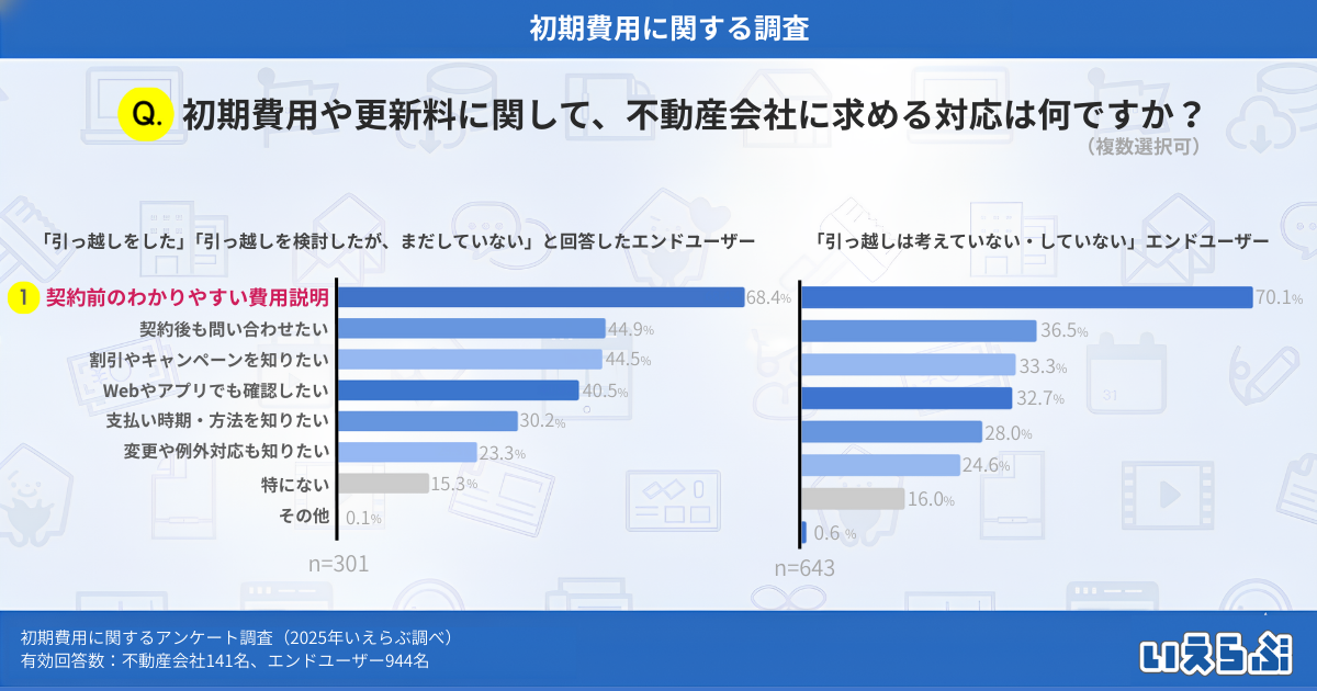 引っ越しの有無にかかわらず、エンドユーザーは「契約前のわかりやすい費用説明」を最も重視していることがわかりました。