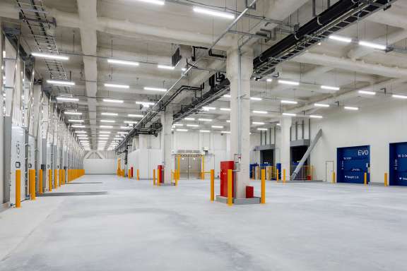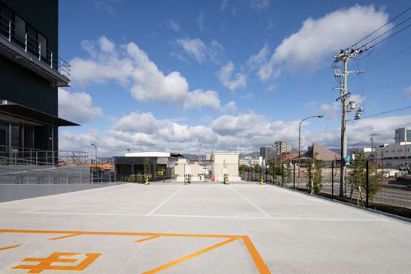 本施設は長谷工総合開発の物流施設「ルネロジ」※1シリーズとして初の開発案件となります。地上4階建て(BOX型)、延床面積約14,726.56㎡の開発型の賃貸倉庫および冷凍冷蔵倉庫です。立地は、阪神高速神戸線「京橋」インターから約4.3km、ポートライナー「医療センター」駅徒歩10分、「市民広場」駅徒歩12分、また神戸港や神戸空港からも至近と良好なアクセスを誇ります。設備面では、保冷車両スタンバイ用電源コンセント(200V・400V)を計11箇所設置し、冷凍・冷蔵車両の待機時にも安定した電力供給が可能です。環境配慮としては、冷凍・冷蔵設備に自然冷媒を採用し、CASBEE神戸Aランクを取得、全館LED照明を採用しています。加えて、非常用発電設備を完備し、災害時でも最大72時間の電力供給を維持できる体制を整えています。