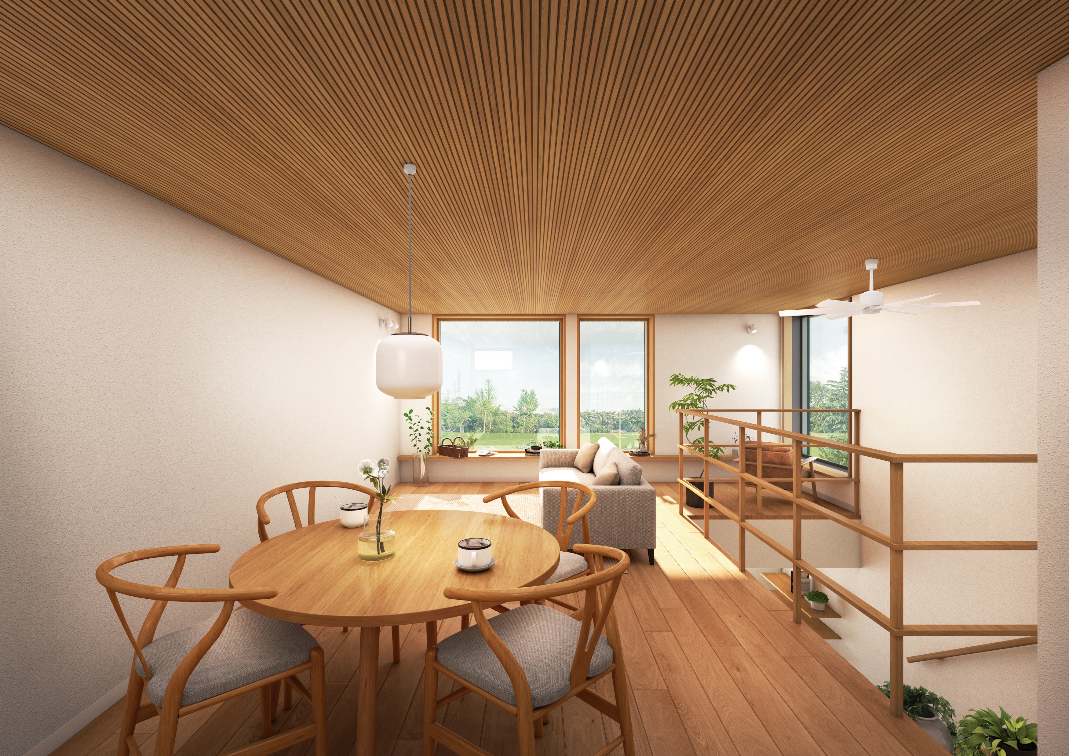 そして切妻屋根のシンプルな外観に、杉板張り外壁。経年美化していく外観も、この街に暮らす皆さまの目印となり、そして地域の子どもたちの原風景・原体験となりますように。未来により良いかたちとして、子どもたちへ、そして街へ「再分配」され、引き継がれていくことを願う住まいです。