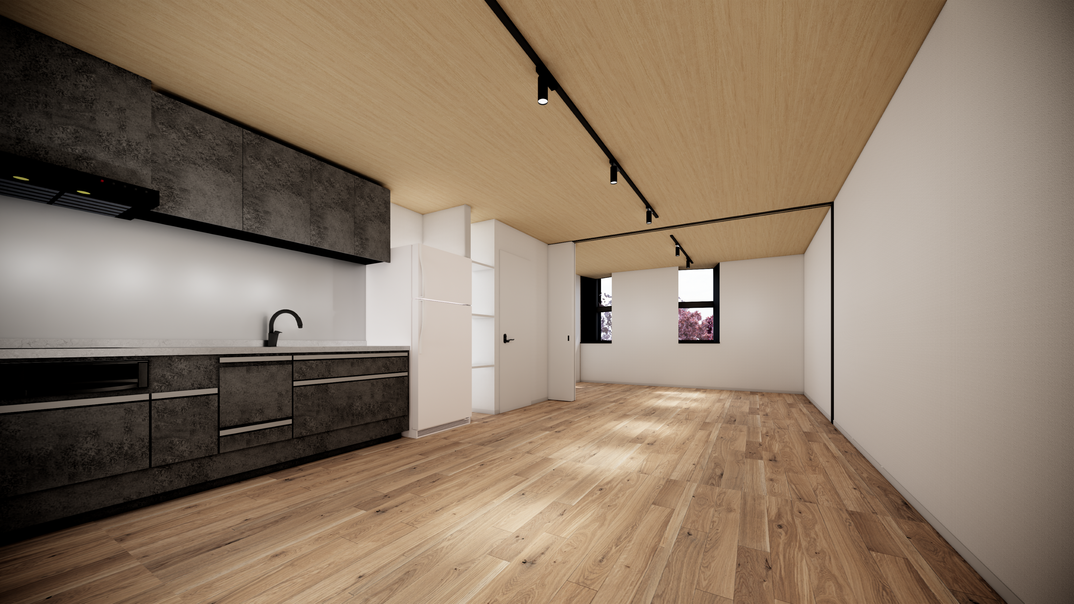岡山・問屋町という感度の高い街の空気に呼応するETENA中仙道西は、「暮らしを選べる器」であることを軸に構想しています。住まいを単なる居住スペースとしてではなく、家族やパートナーとの関係性や時間の重なり方までも受け止める「暮らしの基盤」として捉えました。無垢のフローリングをはじめとする自然素材を用い、視覚的な温かさだけでなく触れたときの質感や経年による表情の変化も楽しめる住まいとしています。木造でありながら高い断熱性と遮音性を備え、外部環境の影響を穏やかに抑えつつ、四季の気配をやさしく暮らしの中に取り込み、時の流れを感じる日常をつくります。