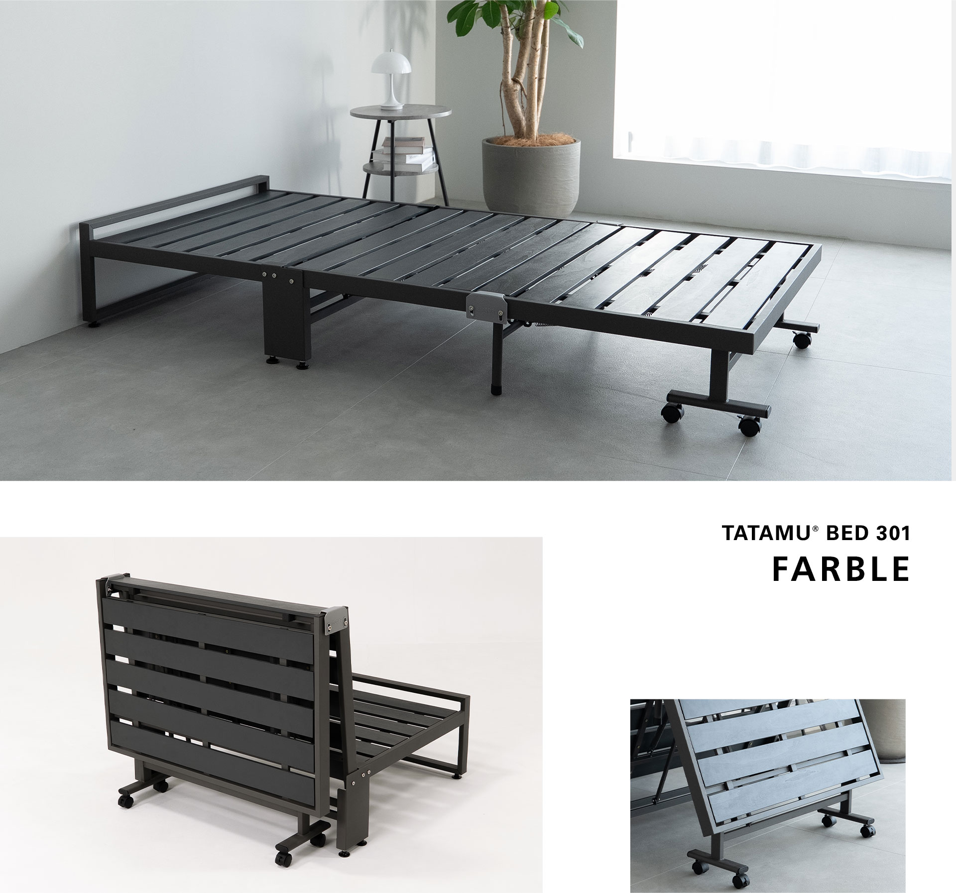 人間工学に基づいた空間有用性と安全な使い心地を両立するトランスフォーム家具ブランドTATAMUⓇを展開する株式会社エムール(東京都立川市:代表取締役 高橋 幸司)は、2026年1月19日より、三つ折りマットレス専用折りたたみベッド『FARBLE -ファーブル- (以下、ファーブル)』の先行予約販売(2月上旬入荷分)を開始しました。