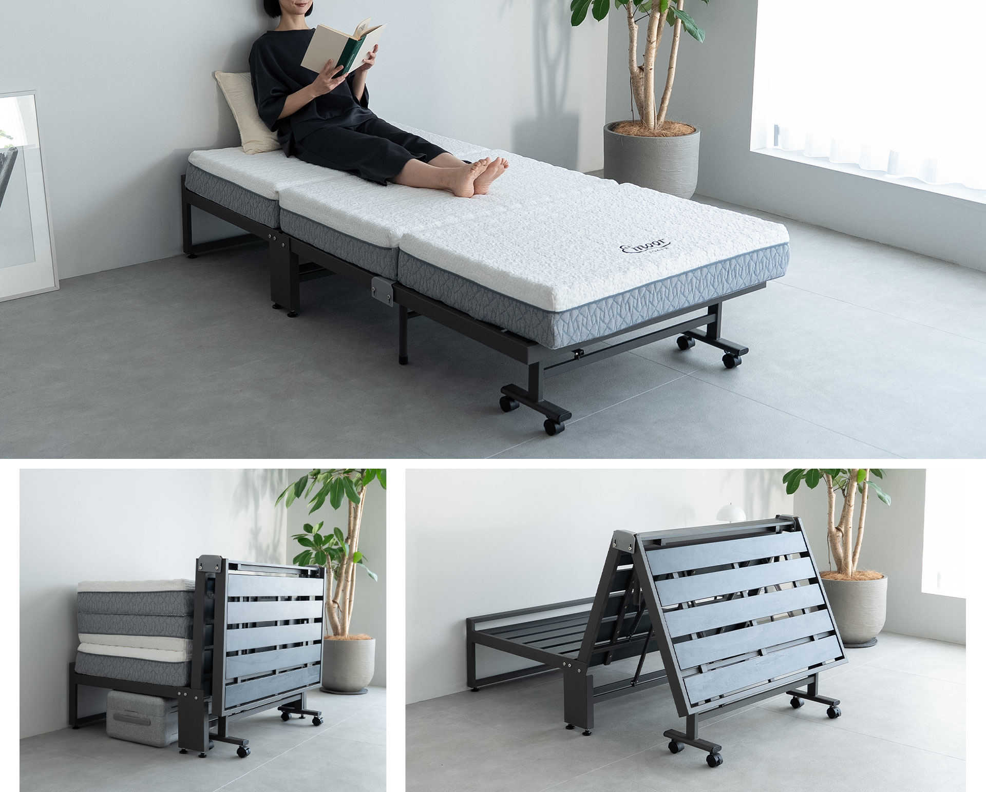 TATAMUから、三つ折りマットレス専用折りたたみベッド登場。