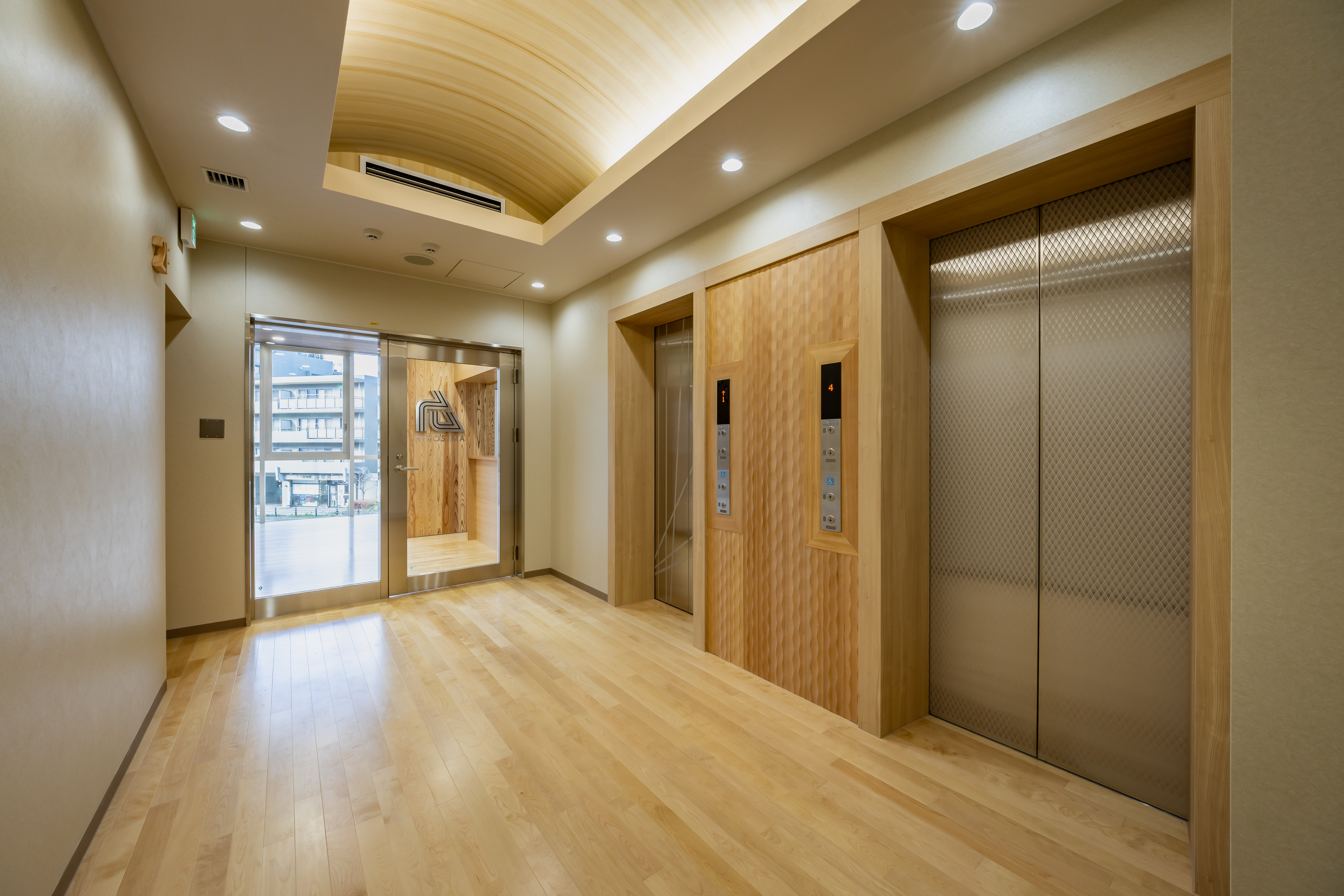 鉄筋コンクリート造(RC造)でありながら、内装やデザインに「木」のぬくもりを取り入れた“木質化”のコンセプトを採用。2階の来客用フロアや6階の大ホールには天然木を採用しました。