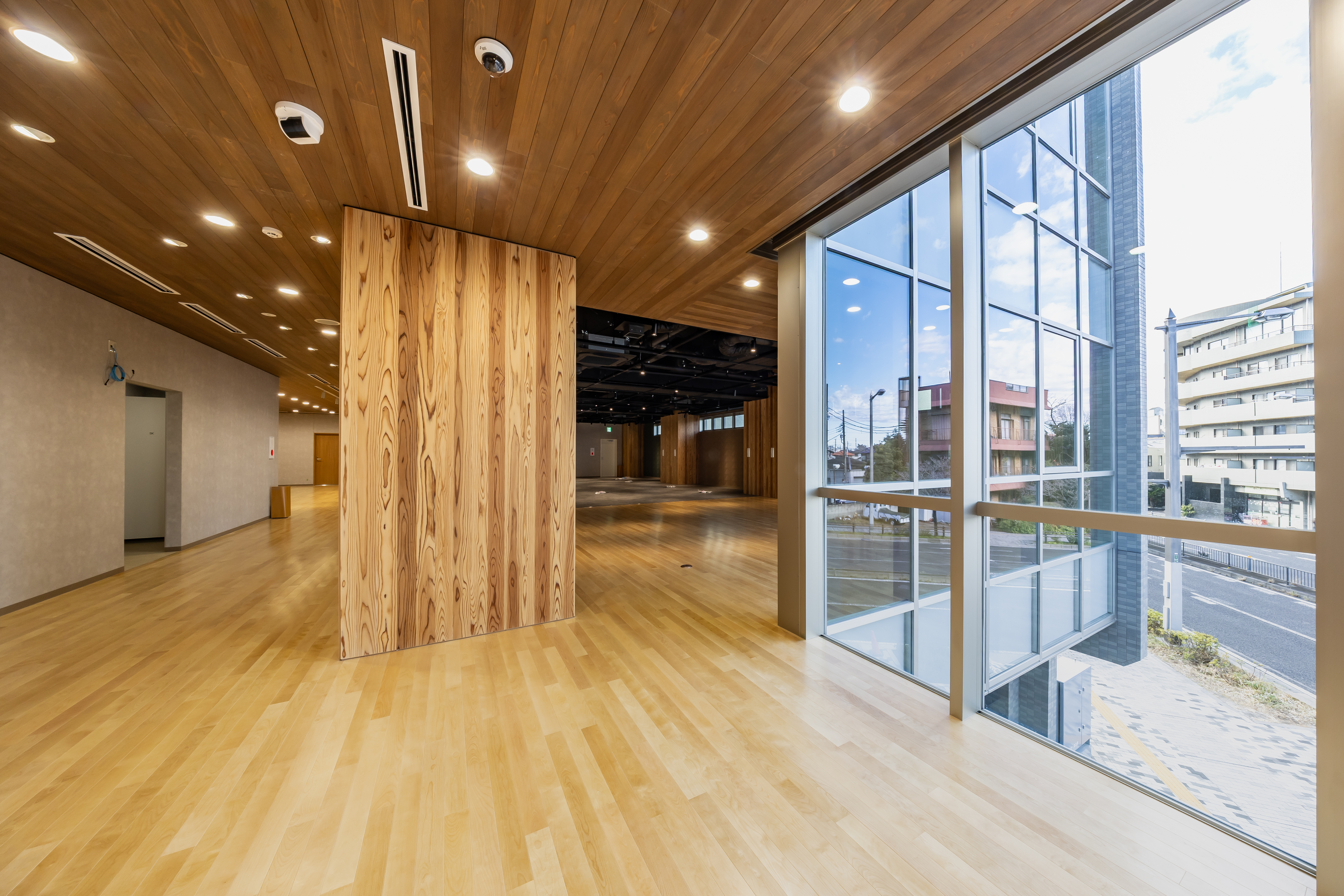 創業の地・柏駅前に、木質化をコンセプトとしたRC造6階建てビルが竣工。最大250名収容可能な大ホールを完備