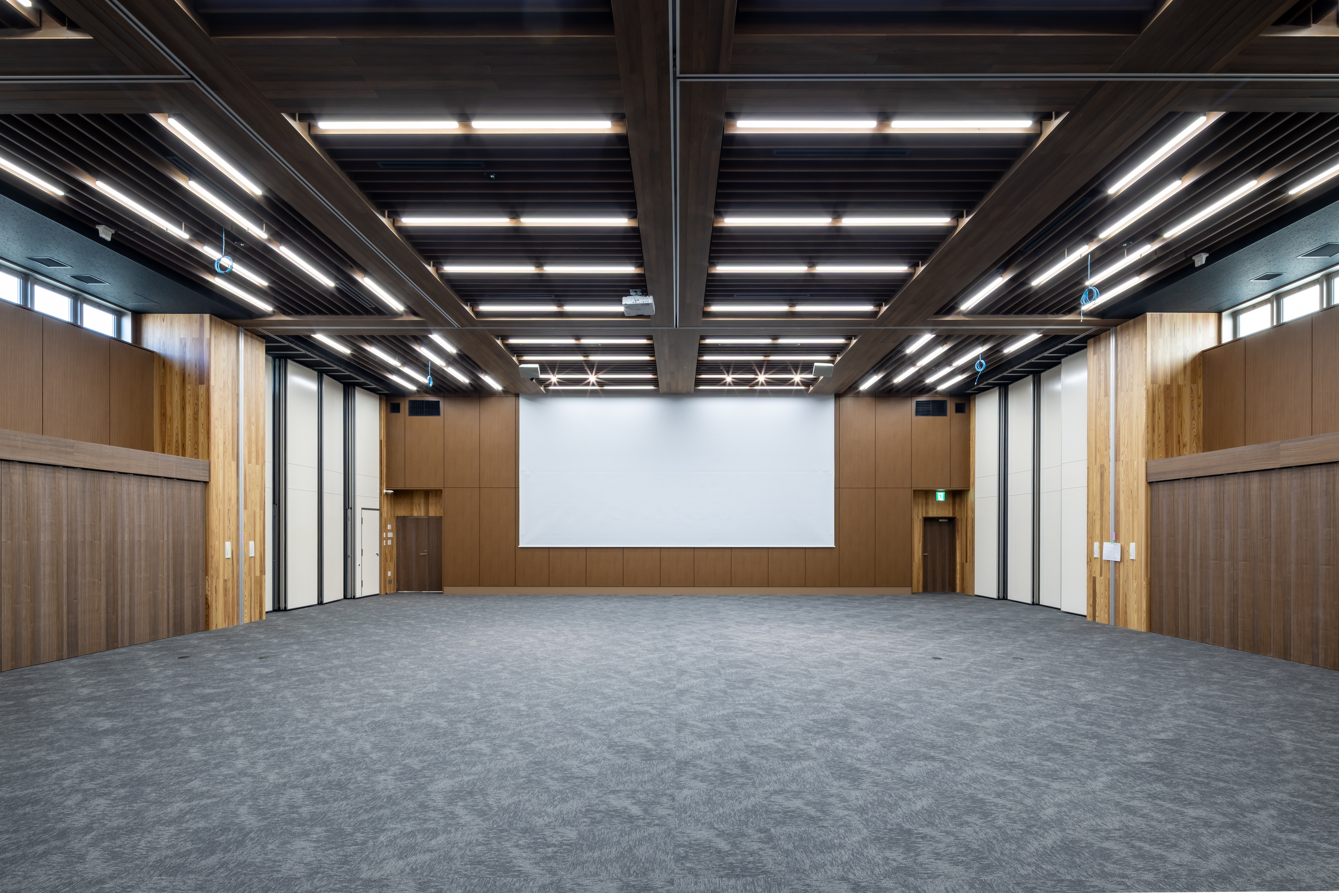 最上階の6階には、最大250名を収容できる大ホールを設置。社内の大規模会議や研修だけでなく、多目的な活用を目指してまいります。