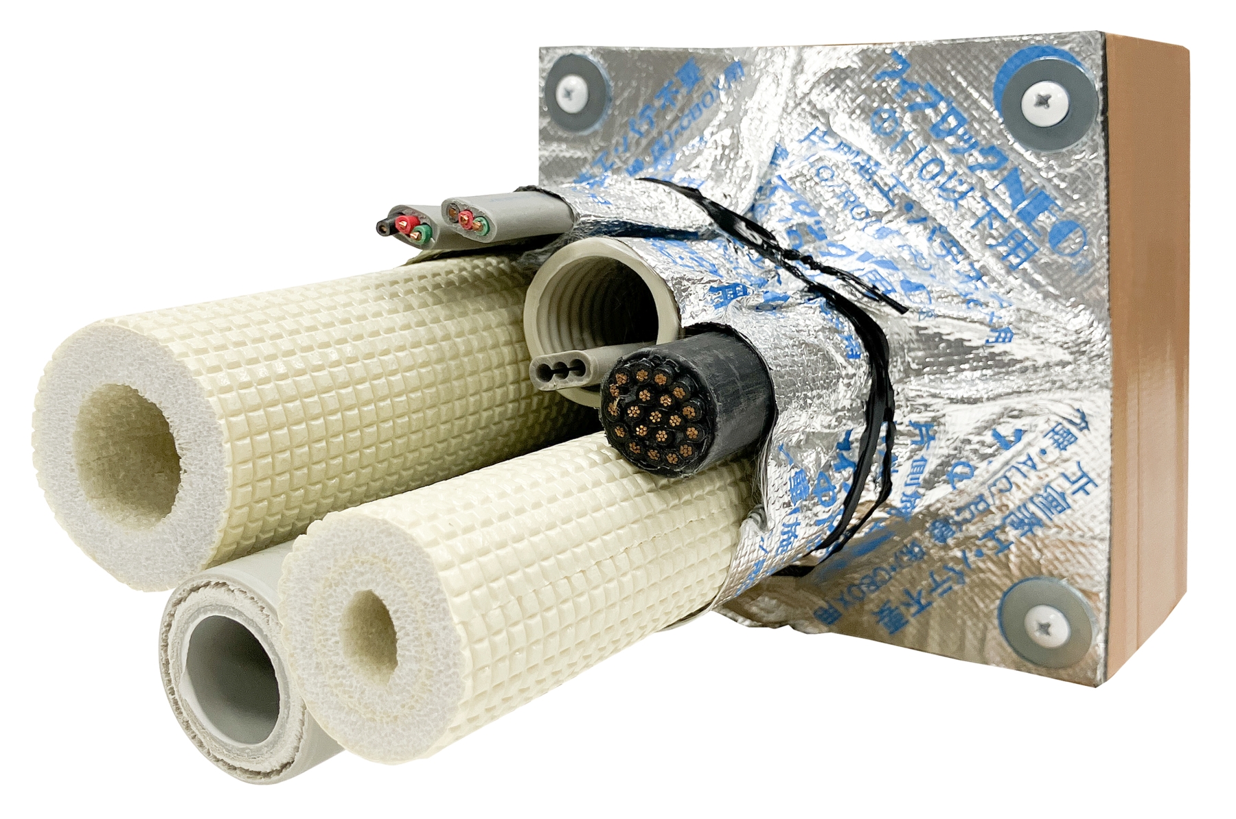 パテ埋め不要で省施工の防火区画貫通措置部材「フィブロックNEO」がこの度、新たな国土交通大臣認定を取得しました!すでに認定を取得している電気用途に加え、空調配管でも使用可能で、パテ埋めが不要となります!
