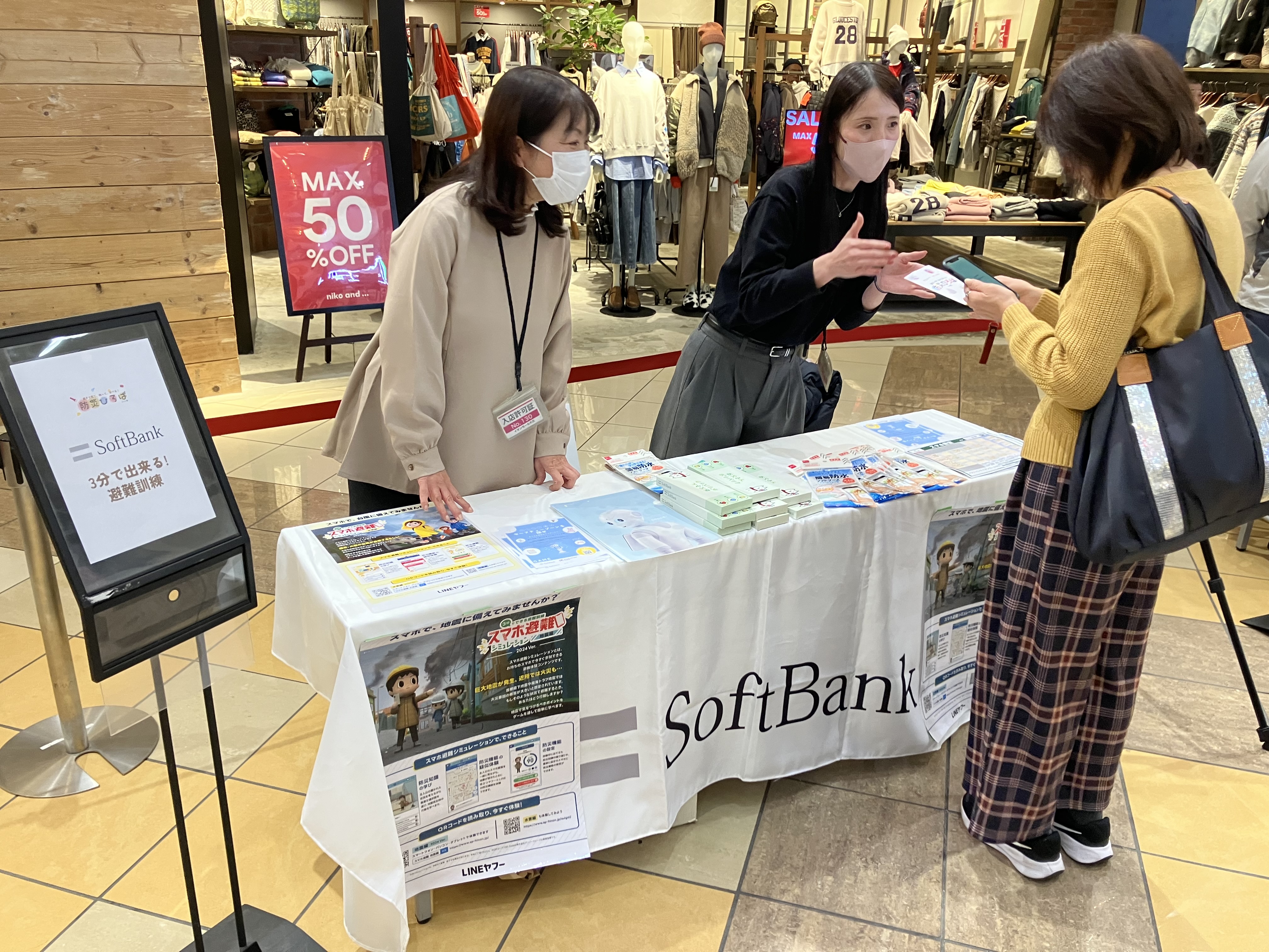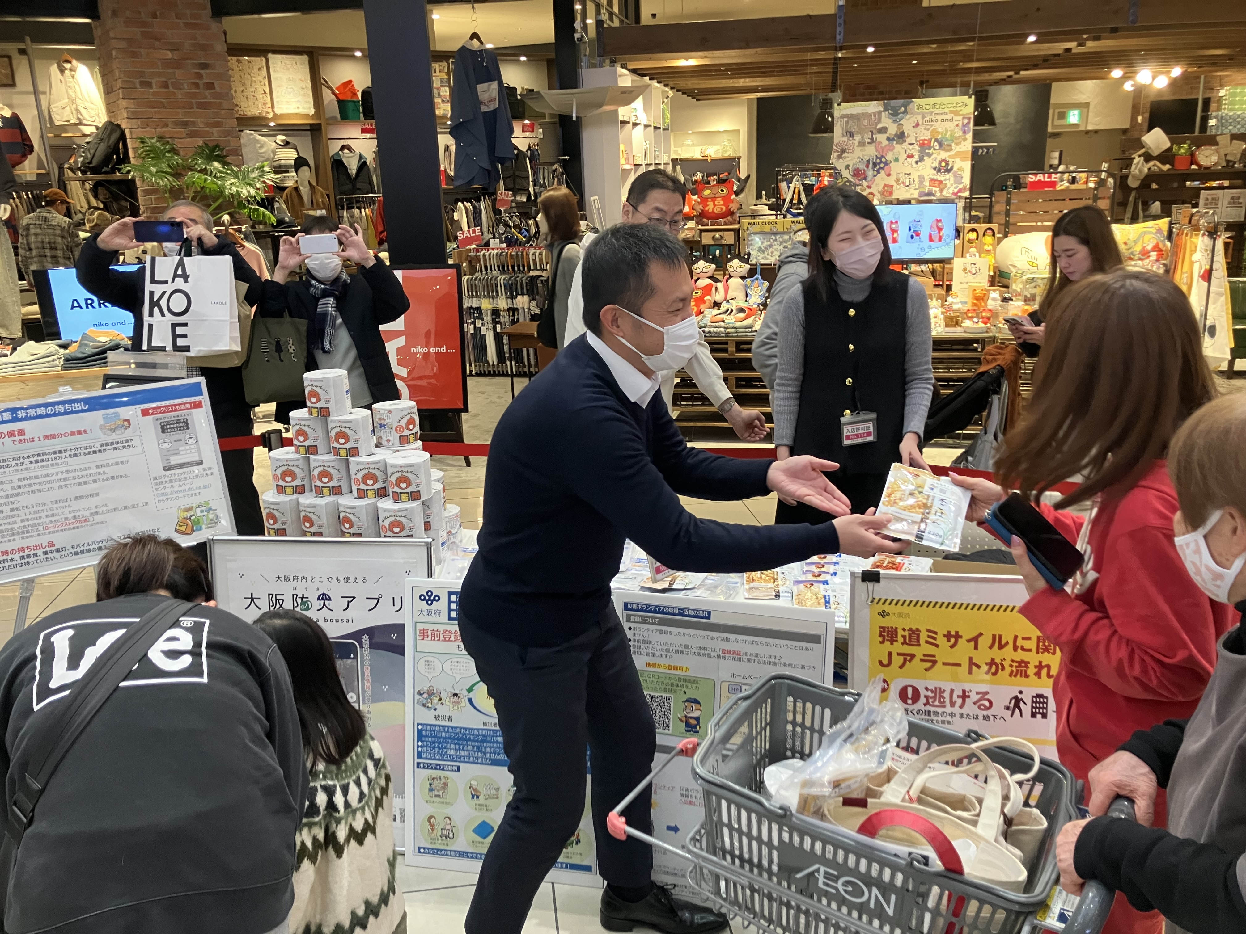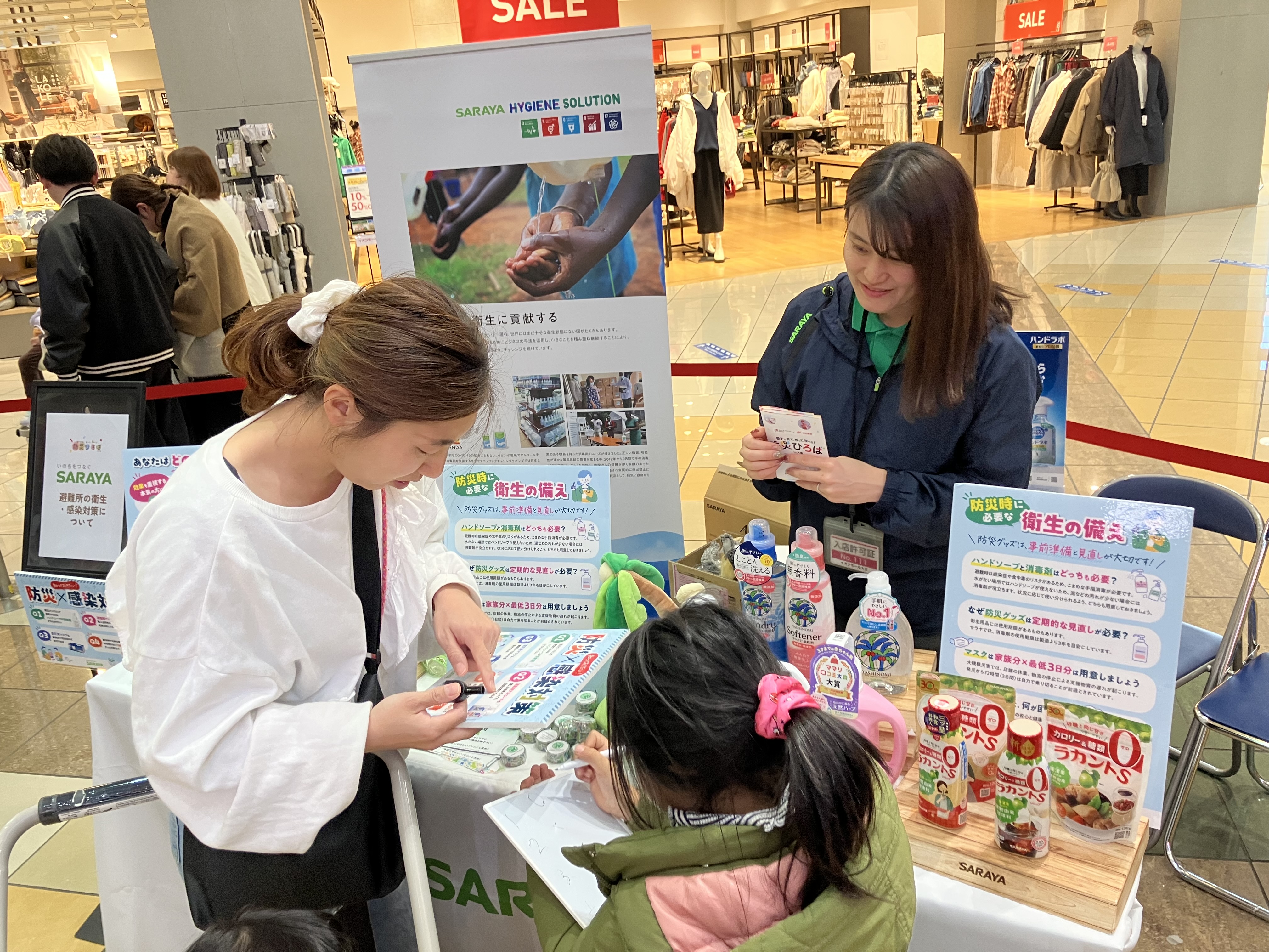 イベントでは、当社と日本郵便のほか、8つの企業・行政機関・自治体(江崎グリコ株式会社、大阪府危機管理室、大塚製薬株式会社、サラヤ株式会社、総務省消防庁、ソフトバンク株式会社、守口市、株式会社ワッツ)がブースを出展し、それぞれ特色ある防災啓発活動を展開しました。