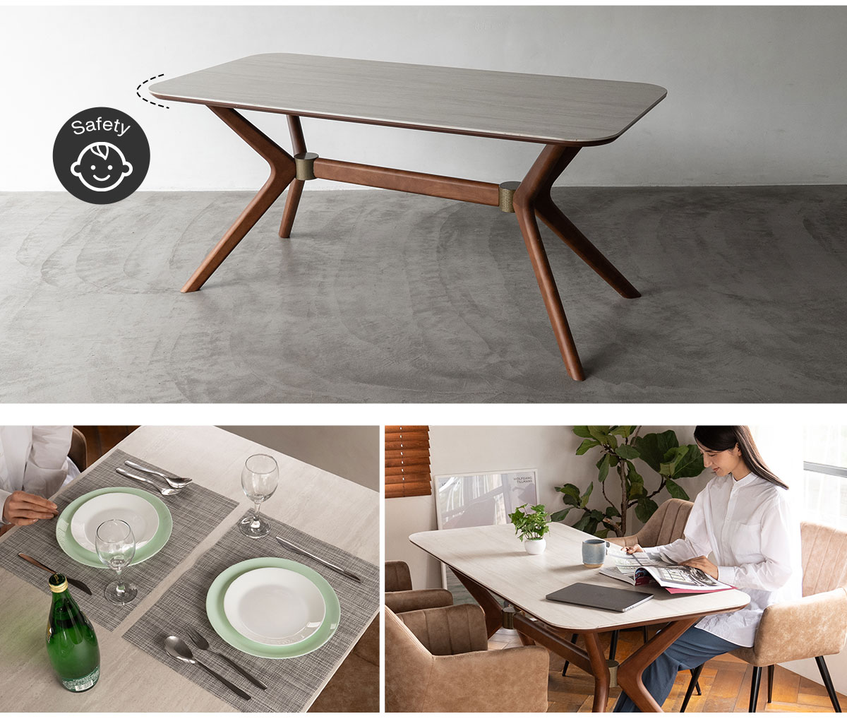 シャープなデザインはそのままに、見た目と安全性のバランスを両立。家族みんなが心地よく使えるダイニングに仕上がっています。