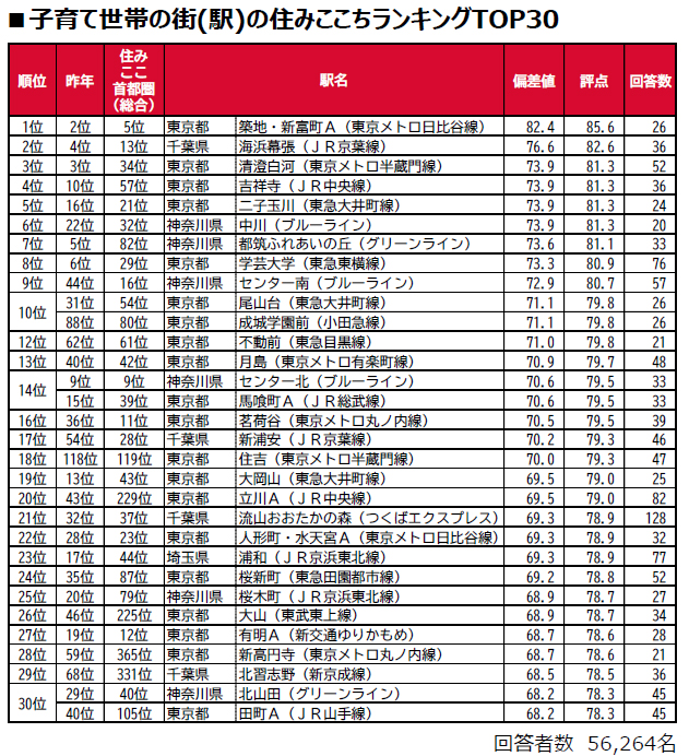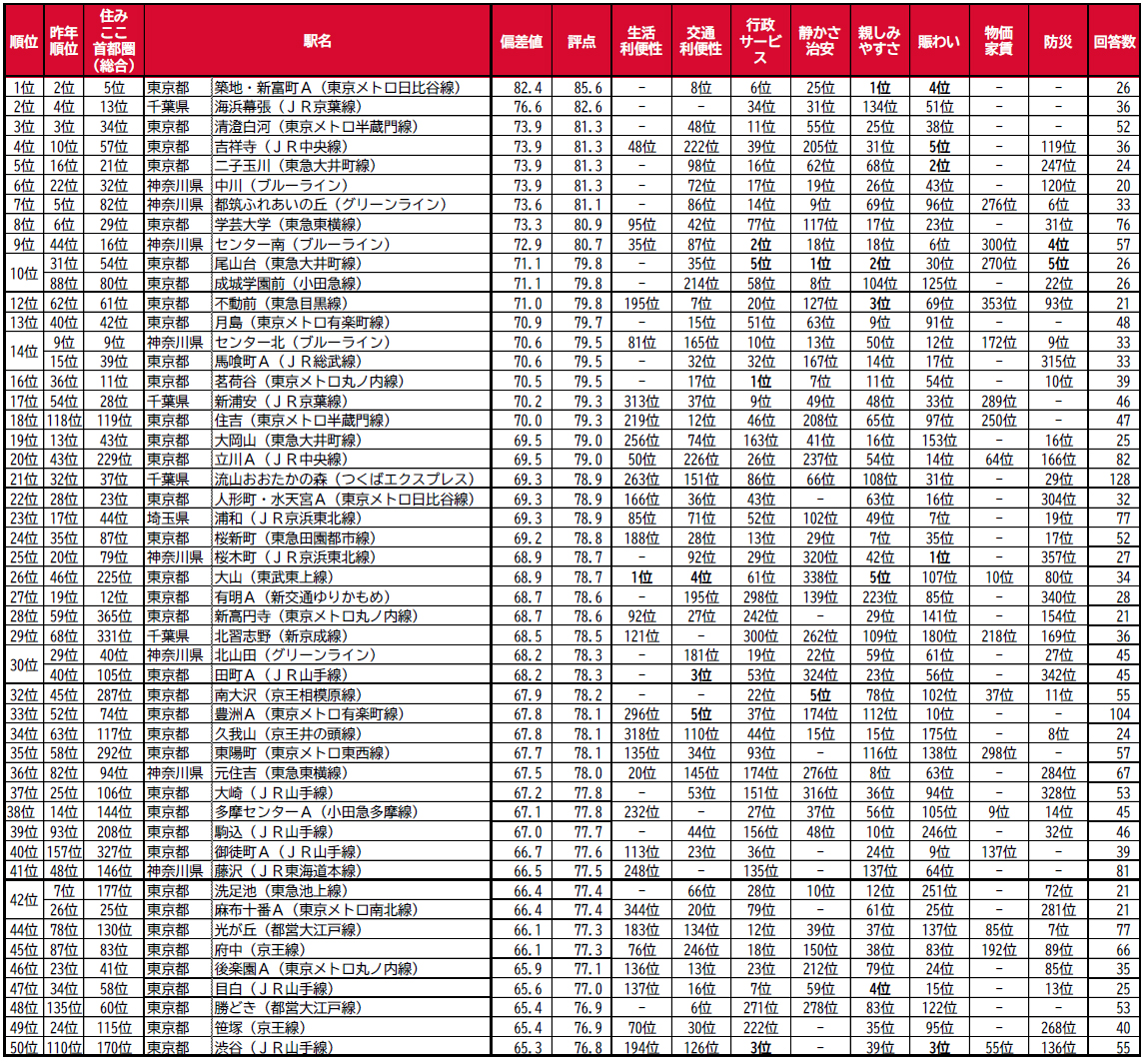 子育て世帯の街(駅)の住みここちランキング2025<首都圏版>1~50位