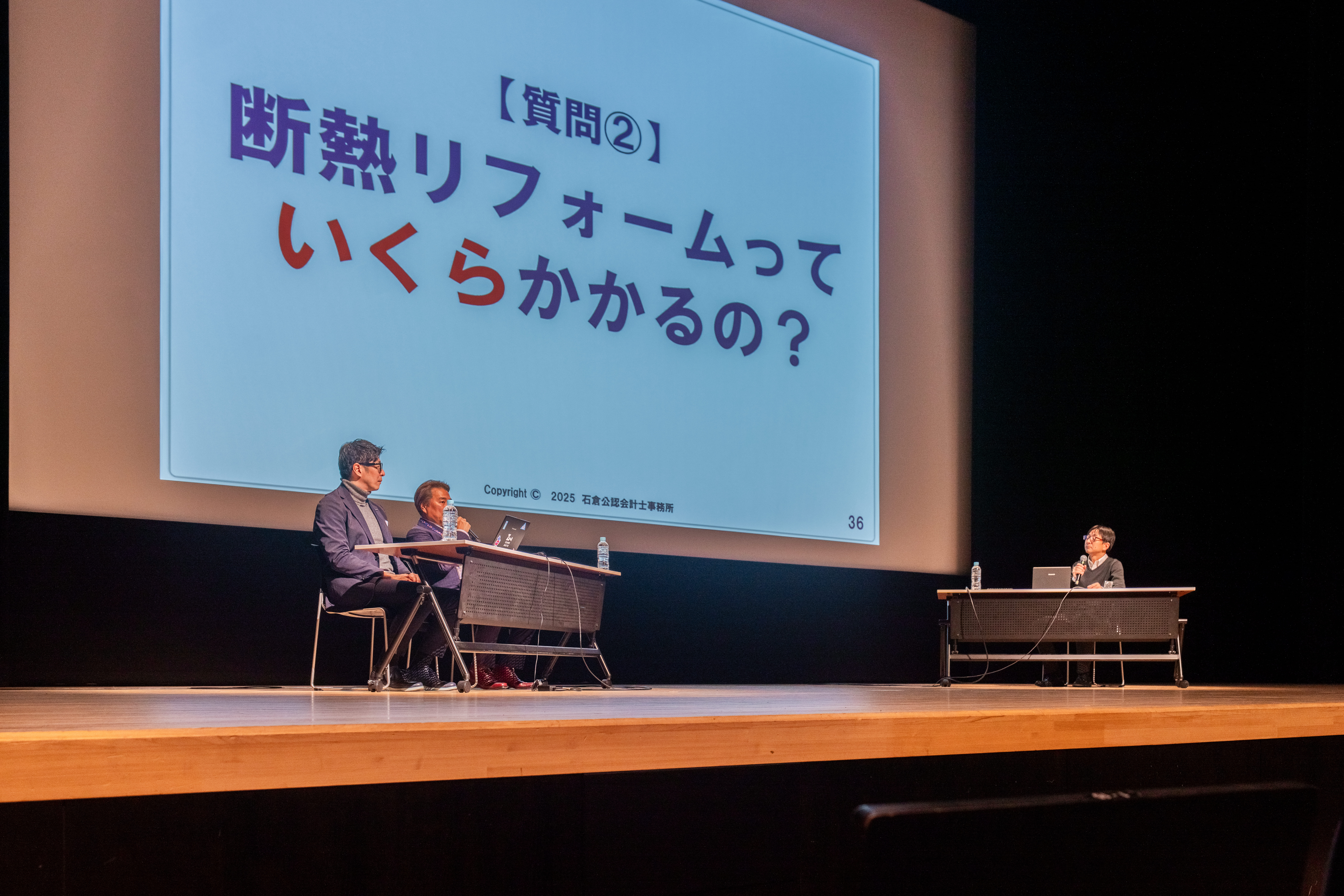 SANKENステージでは、参遊亭英遊氏と三建副社長・中澤 博明氏、(一社)日本人の健康をつくる住宅断熱リフォーム推進協議会 事務局長・小松昭氏による特別トークセッションも実施。住まい・資産・相続を切り離さず、「暮らしをどう次世代につないでいくか」をテーマに語り合い、多くの来場者が熱心に耳を傾けていました。