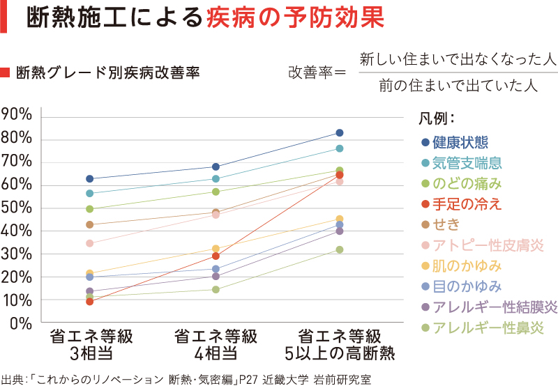 高断熱住宅は、人生100年時代における健康維持やヒートショックの防止、冬季の冷暖房負荷軽減によるCO₂排出削減エネルギーコストの削減の効果を見込むことができます。