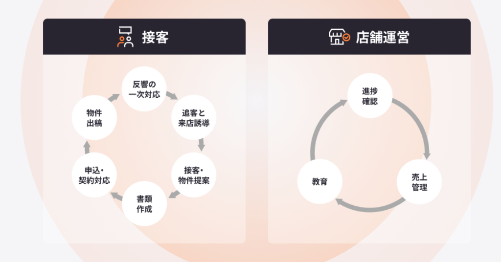不動産賃貸仲介会社向けの業務支援サービスです。入居希望者の希望条件に合った物件情報の自動メール送信機能、顧客管理(CRM)・営業管理機能、チャットやLINEでのコミュニケーション機能、入居希望者専用マイページ機能など、賃貸仲介の営業活動に必要な各種機能を備え、業務効率化と顧客満足度の向上に貢献します。3年連続で不動産仲介会社からの利用率No.1(※1)になり、全国の賃貸不動産仲介会社約2,000店舗で導入(※2)されています。