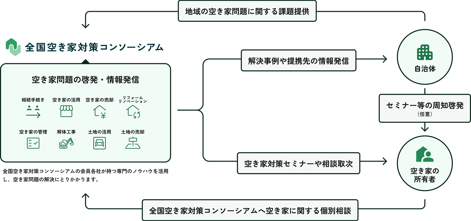 手放したくても何をしたら良いか分からない、売りたいのに売れないという悩みを抱える不動産所有者への支援を強化し、コンソーシアムに参画している事業会社・学術団体とともに、空き家対策を推進してまいります。