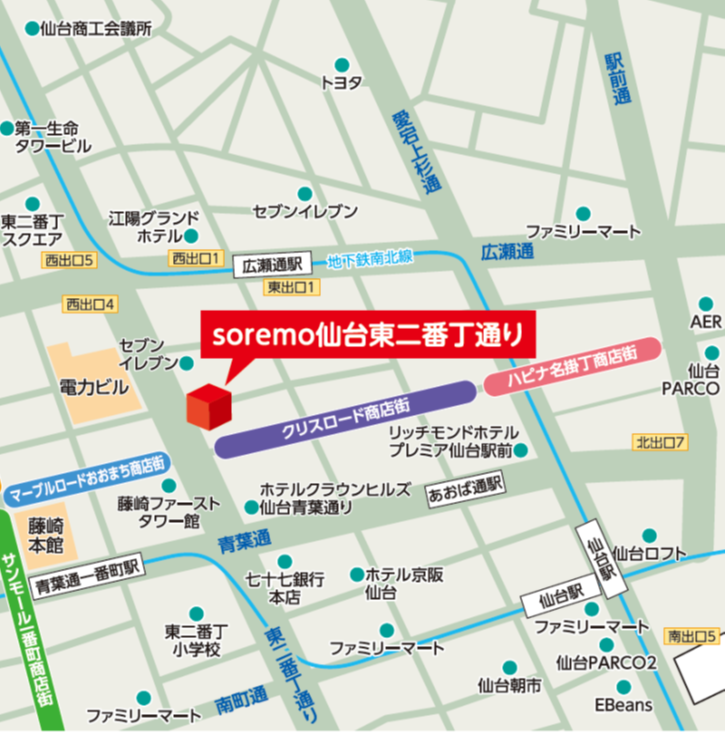 名称 : soremo仙台東二番丁通り
