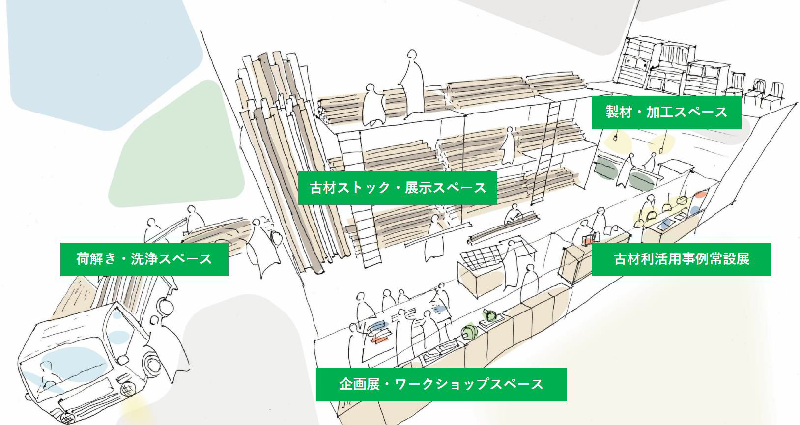 機能         :(運営事業者)空き家解体時などに出る古材の保管や製材ができる