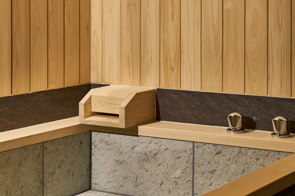 水の音、肌に触れる感覚、広がる湿度、穏やかな光と檜の香り——