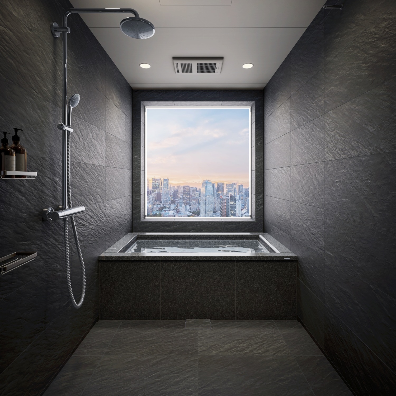 また、天井にはマットブラック仕上げを新たに採用。空間全体を引き締め、より上質で落ち着きのある浴室演出を可能にしました。
