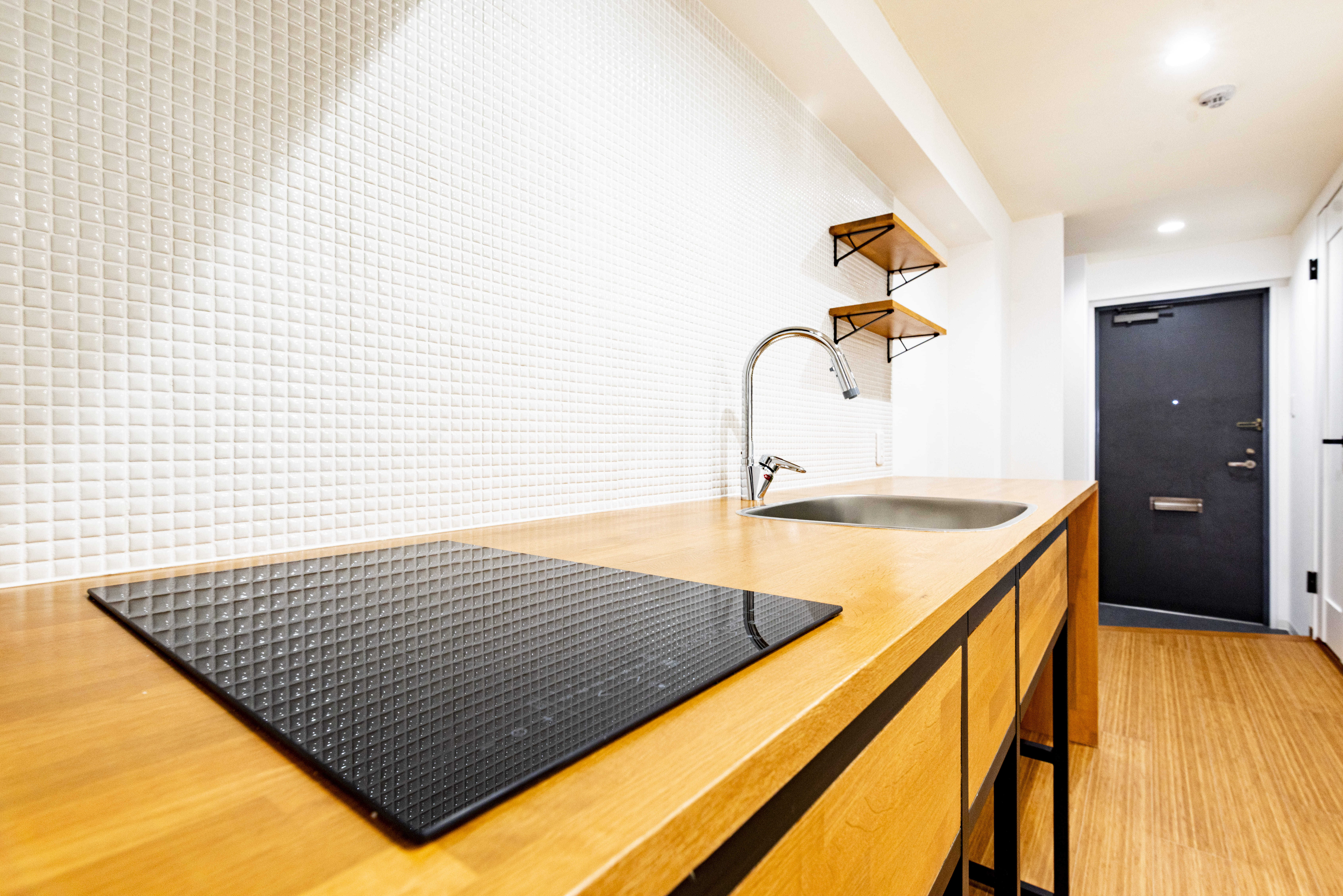国産木材を活用することで、林業振興と輸送に伴うCO₂削減に貢献します。調湿効果も期待でき、木のぬくもりと経年変化を楽しめるキッチンです。