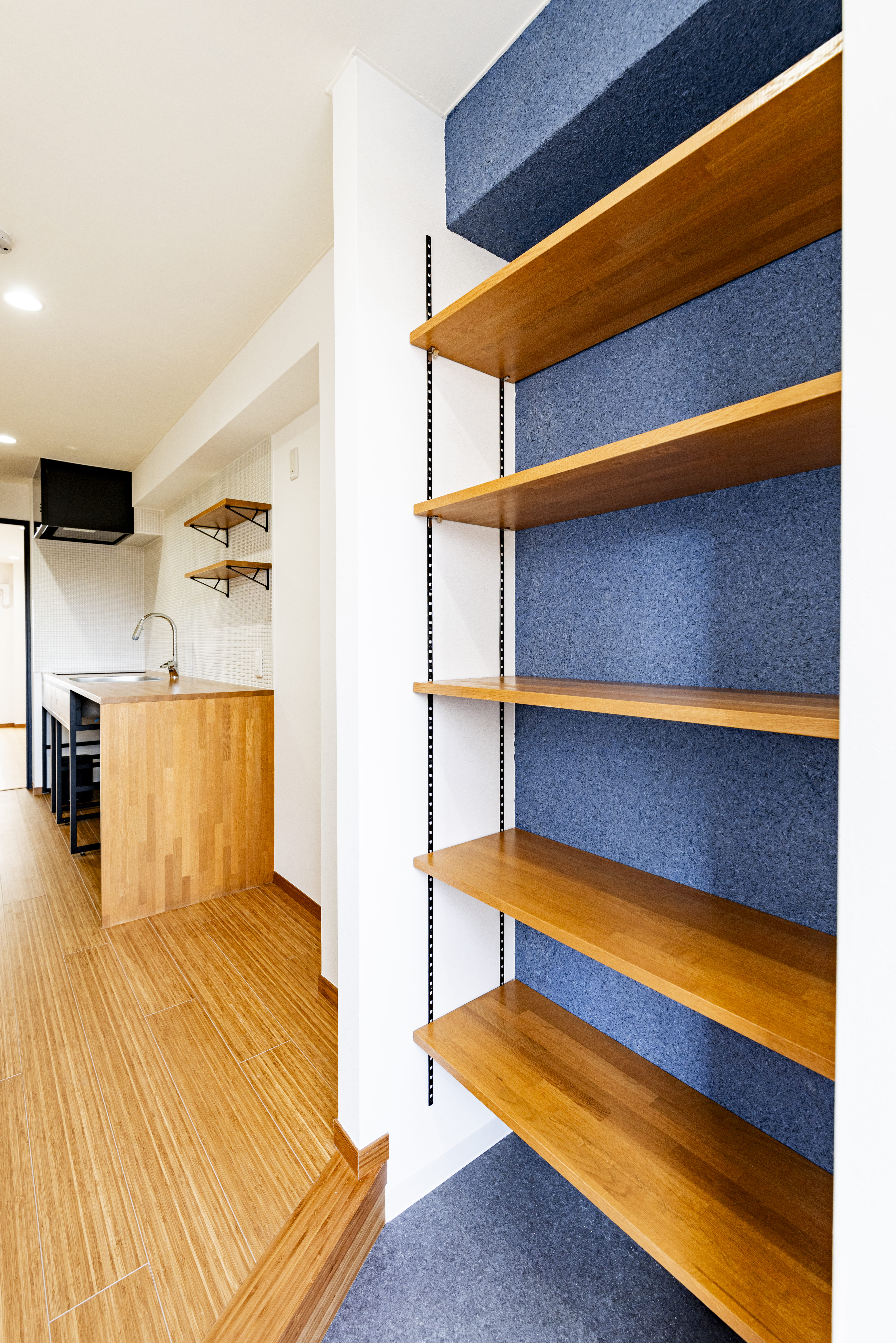 既製品の使用を最低限に留め、木がもたらす温もりとオリジナル性を演出しました。