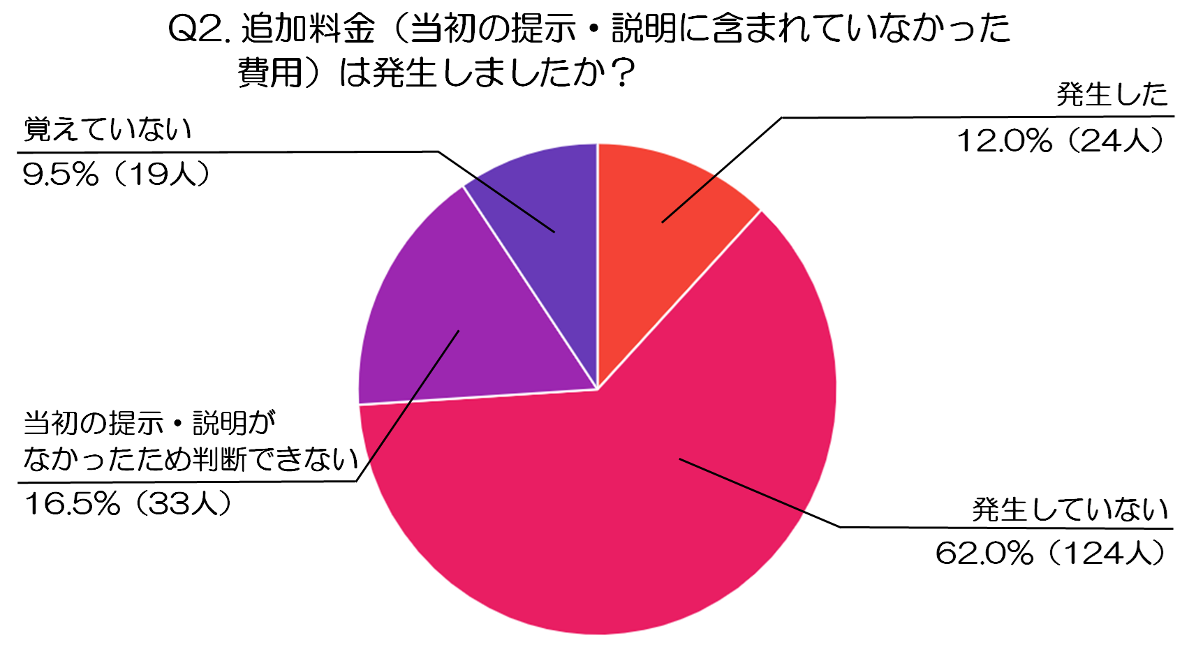 Q2.追加料金(当初の提示・説明に含まれていなかった費用)は発生しましたか?