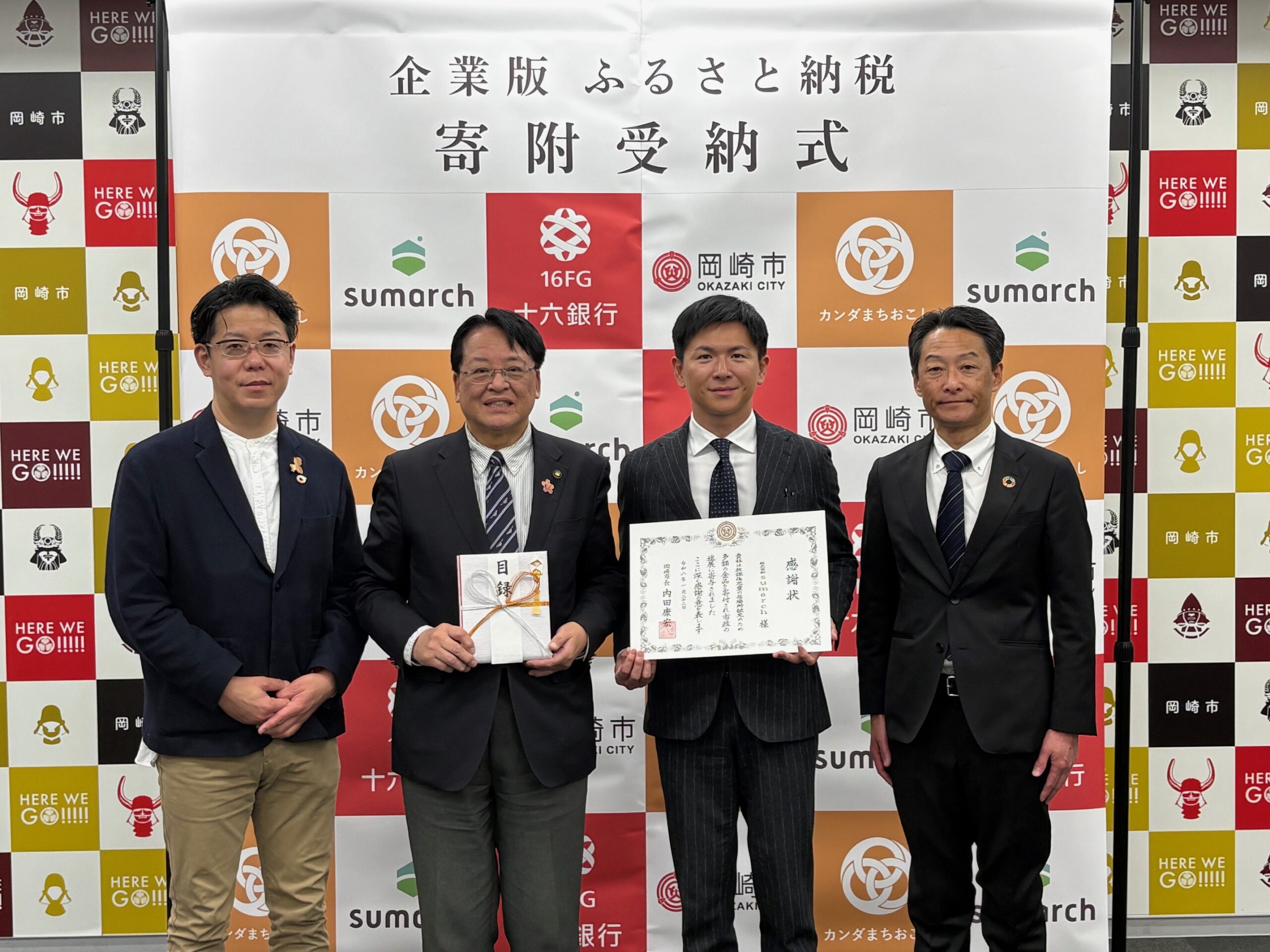 愛知県で不動産流通事業「住まいの窓口 ハウスボカン」・注文住宅「HOLIDAYS」及びリノベーション「KULABO」など住まいにかかわるサービスを展開する株式会社sumarch(本社:愛知県名古屋市、代表取締役:鳥居 儀彰)は、岡崎市が推進する「放課後児童の居場所拡充事業」の支援を目的に、企業版ふるさと納税制度を活用した寄附を実施いたしました。