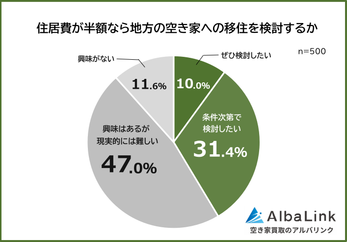 住居費が半額なら地方の空き家への移住を検討する人は41.4%