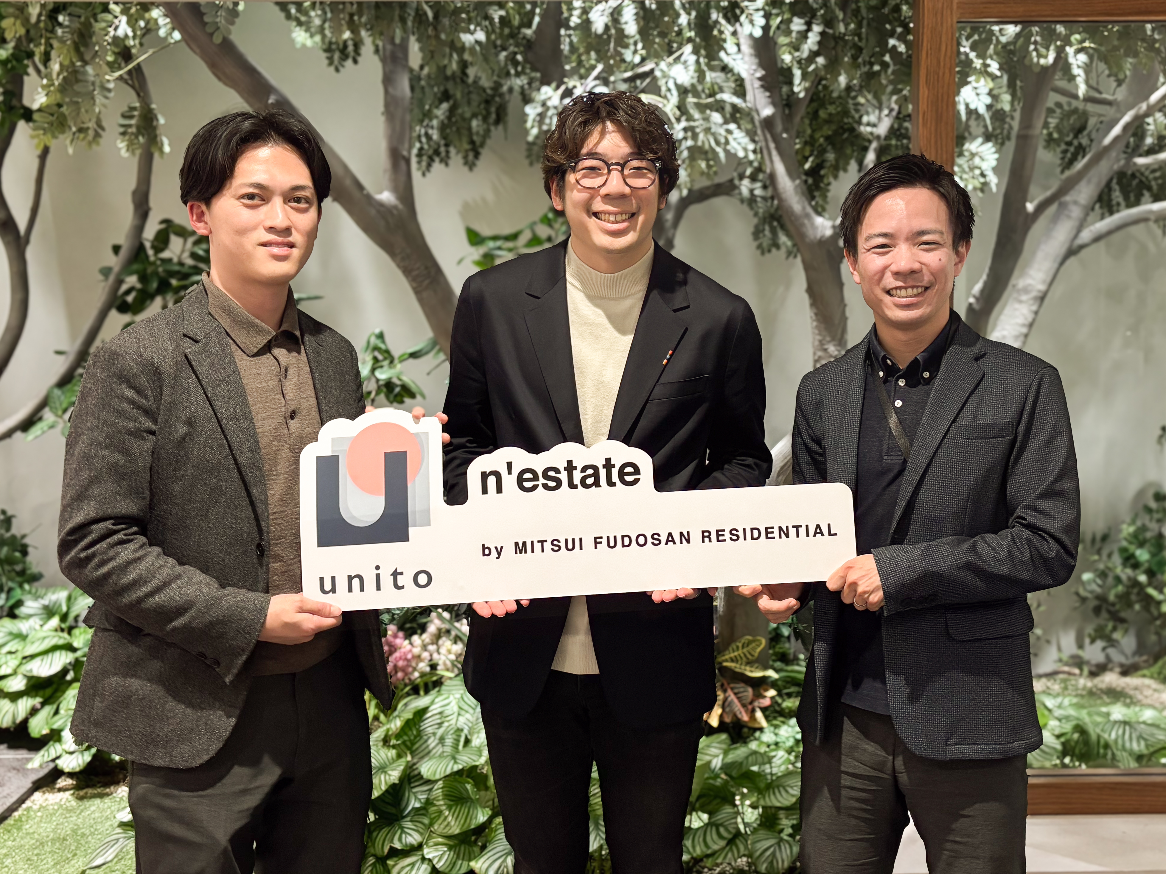 写真左より、三井不動産レジデンシャル揚張 勇樹氏、当社取締役近藤 佑太朗、三井不動産レジデンシャル前島 雄太氏