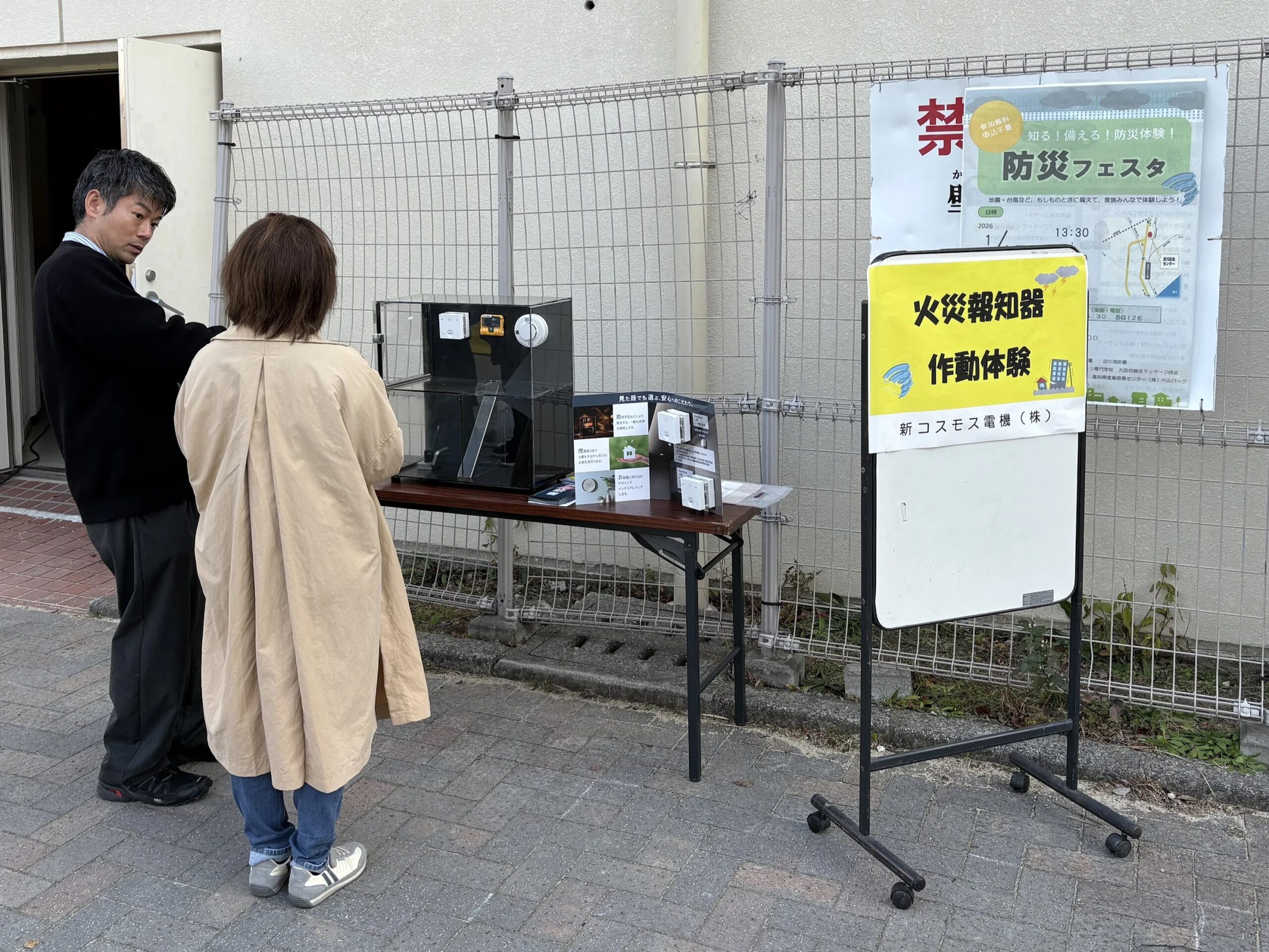 このたびは防災フェスタに出展の機会をいただき、淀川区社会福祉協議会様、淀川区まちづくりセンター様には心より御礼申し上げます。新コスモス電機のブースにお立ち寄りいただいた皆様には、煙流動装置による火災警報器の作動体験を通じて、一酸化炭素検知機能付き火災警報器「プラシオ」の早期検知性能をご理解いただけたことを嬉しく思います。