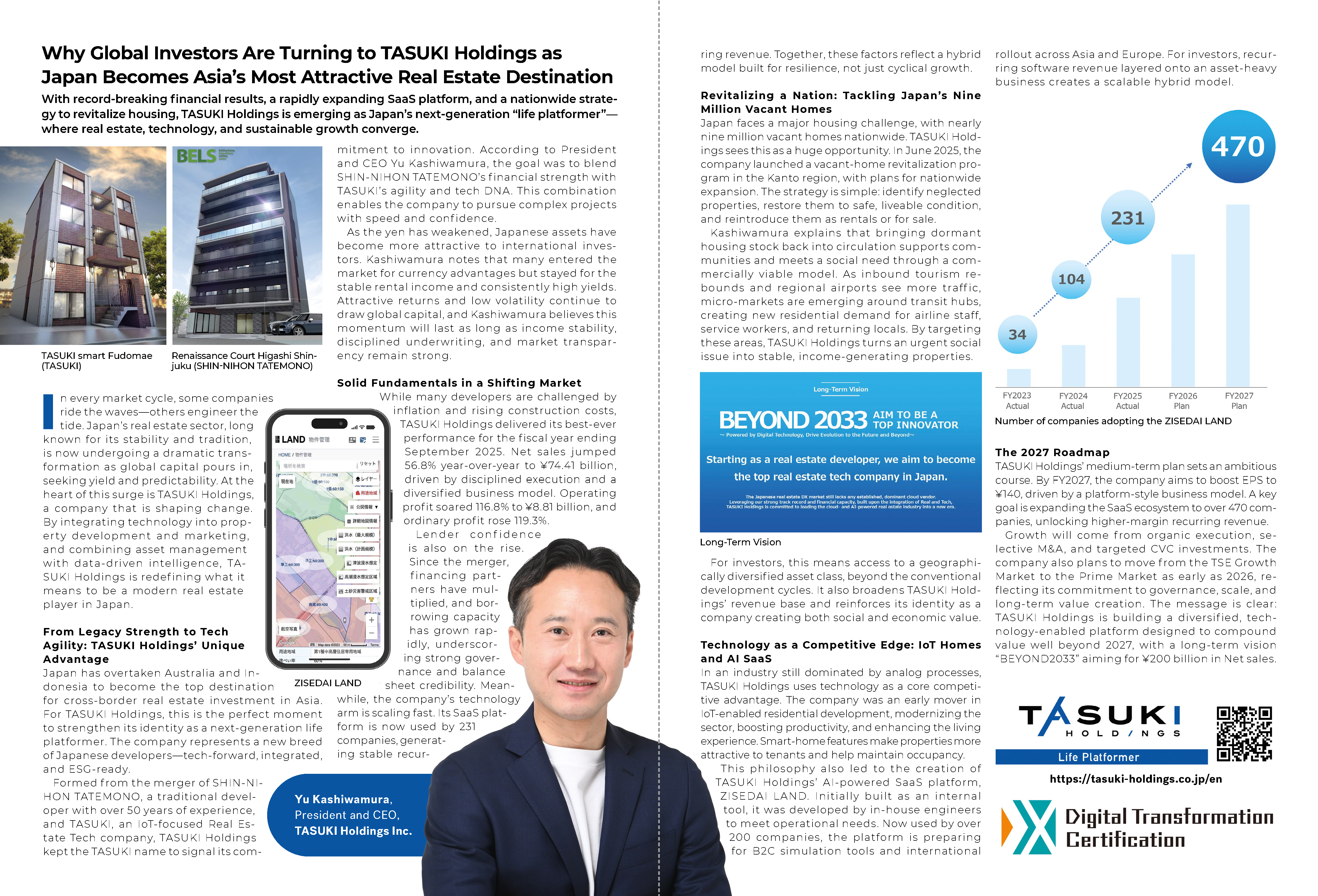 株式会社タスキホールディングス(本社:東京都港区、代表取締役社長:柏村 雄、以下:当社)は、米経済誌「Bloomberg Businessweek」2026年1月号に、当社柏村のインタビュー記事が掲載されたことをお知らせいたします。