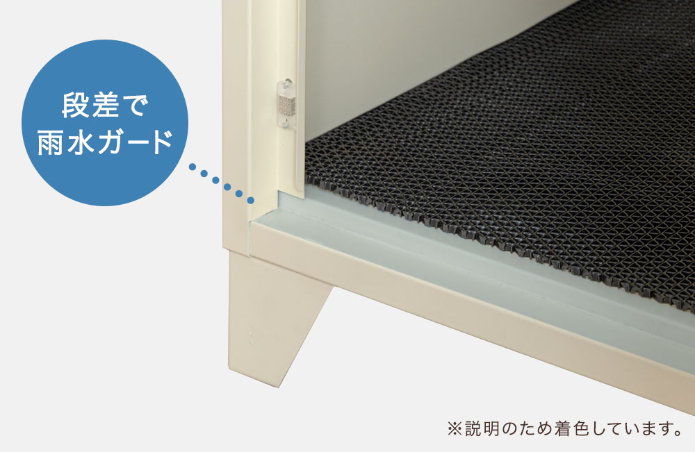 本製品は、扉の内側に段差を設けることで隙間から雨水が入りにくい防水構造としています。